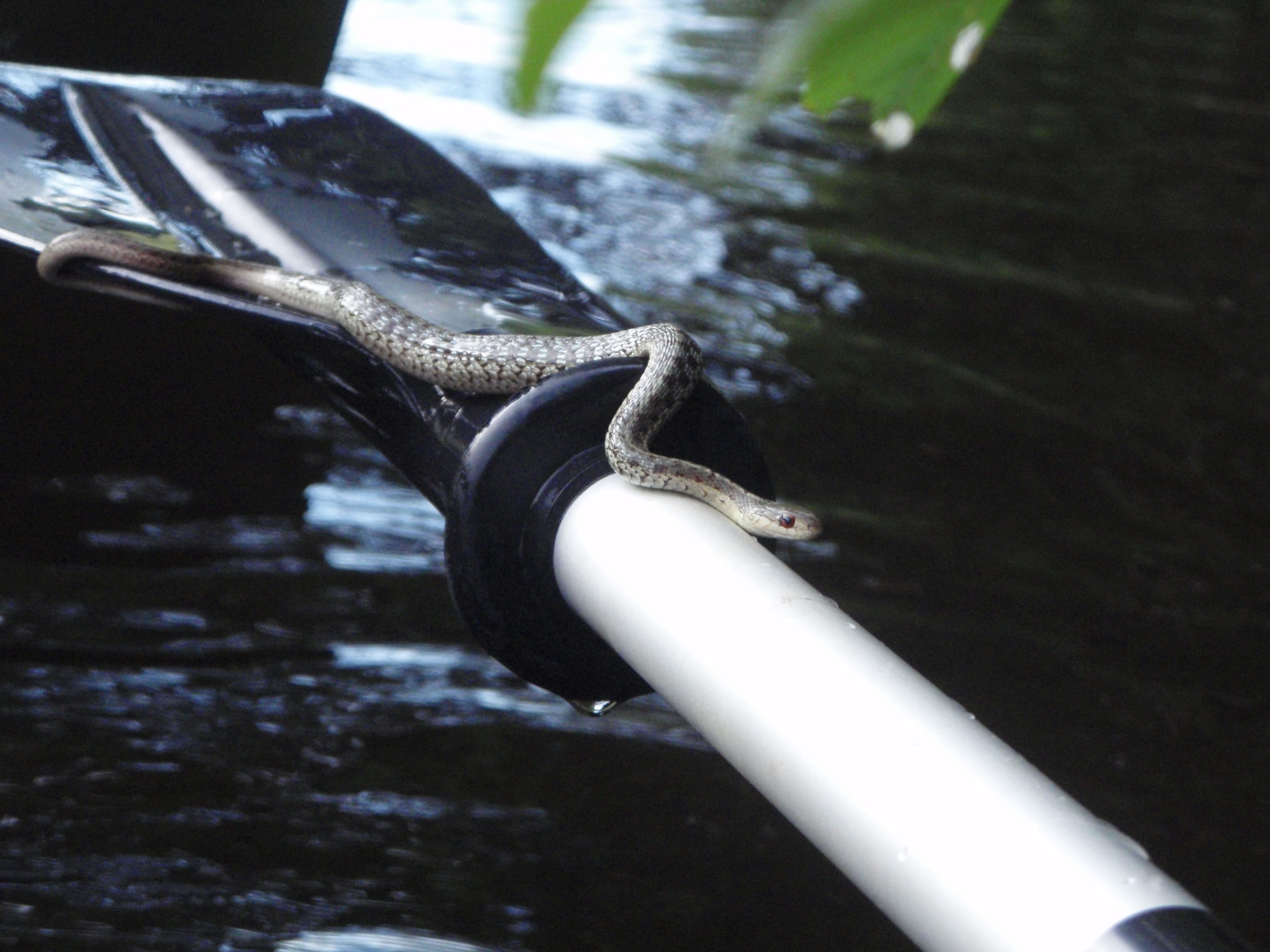 One of two snakes we found swimming the river. One darted deeper into the river (probably a water snake), but this garter snake was easy to coax on a paddle for multiple pictures.