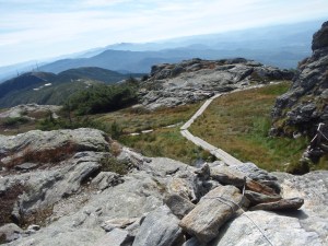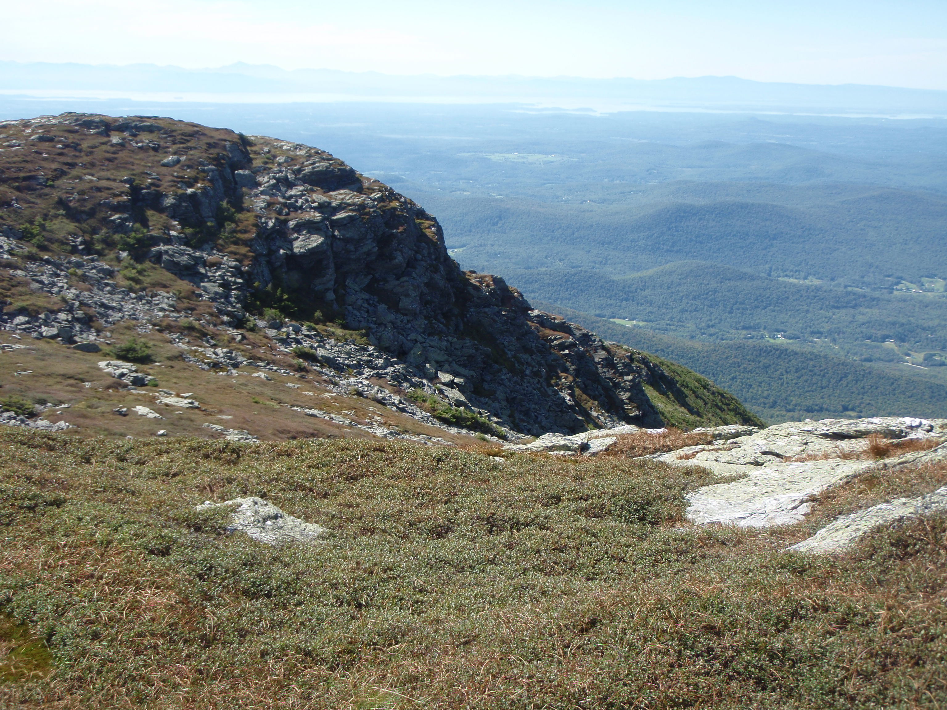 At the Long Trail junction, Lindsay couldn’t wait any longer for a break for lunch, so we found a nice rock to sit upon and took a break. Many people passed us heading up the last 1/4 mile to the summit. A few backpackers, more day hikers, but mostly folks with inadequate gear to be hikers. Lindsay asked “Is there a road up this mountain?” To which Andrew replied, “Yea, you didn’t know that?” “Nope,” Lindsay responded, “why are we hiking it then?” Just kidding, Lindsay thought, we definitely had the better experience.