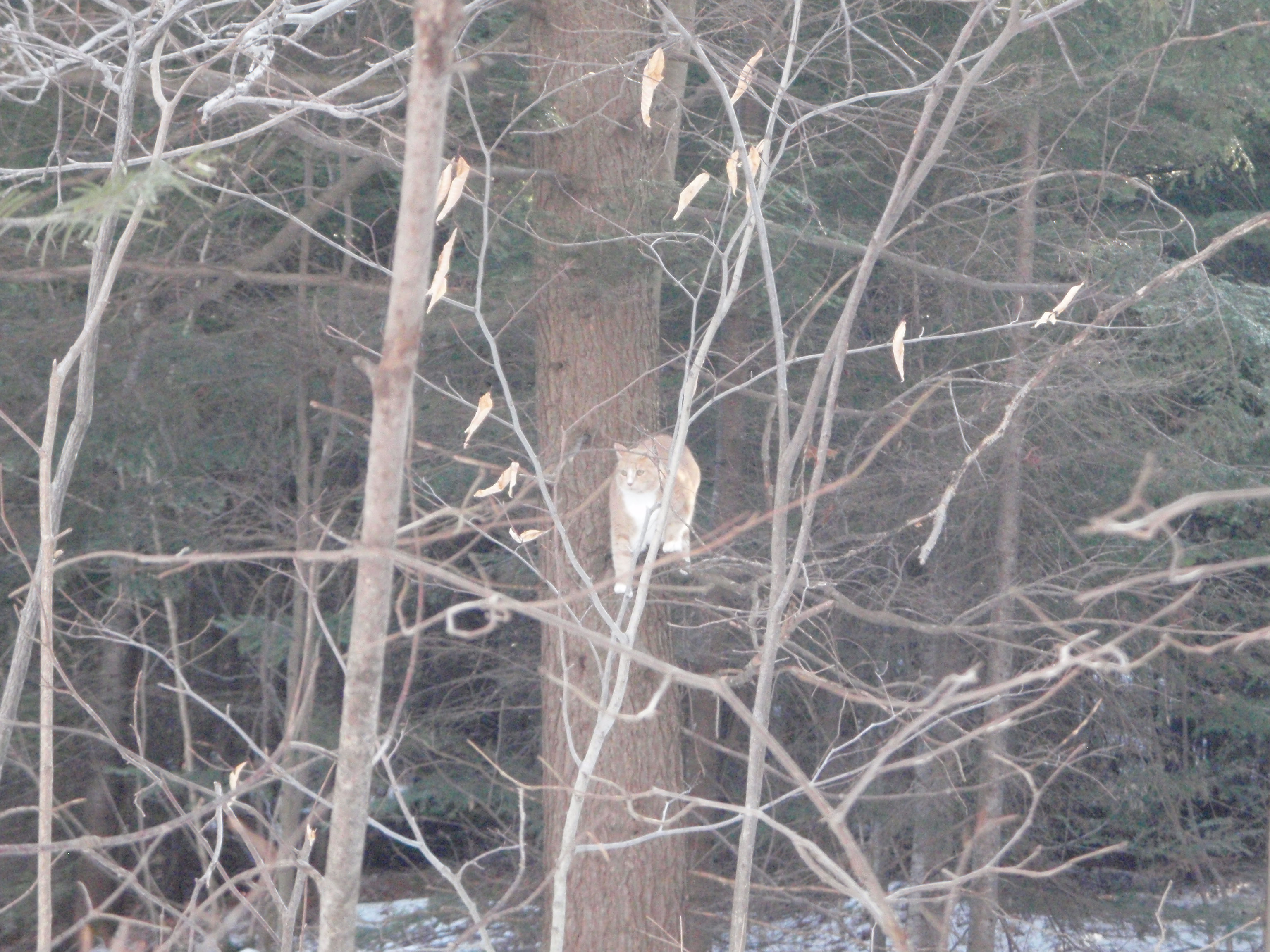 We might be a little different from the usual cat owners, in that we take our cats for walks on a regular basis. Usually we just walk around the woods through the yard and neighboring yards, but on occassion we are followed further into the woods. Once Andrew found Muncy following him about 1.5 miles from the house!