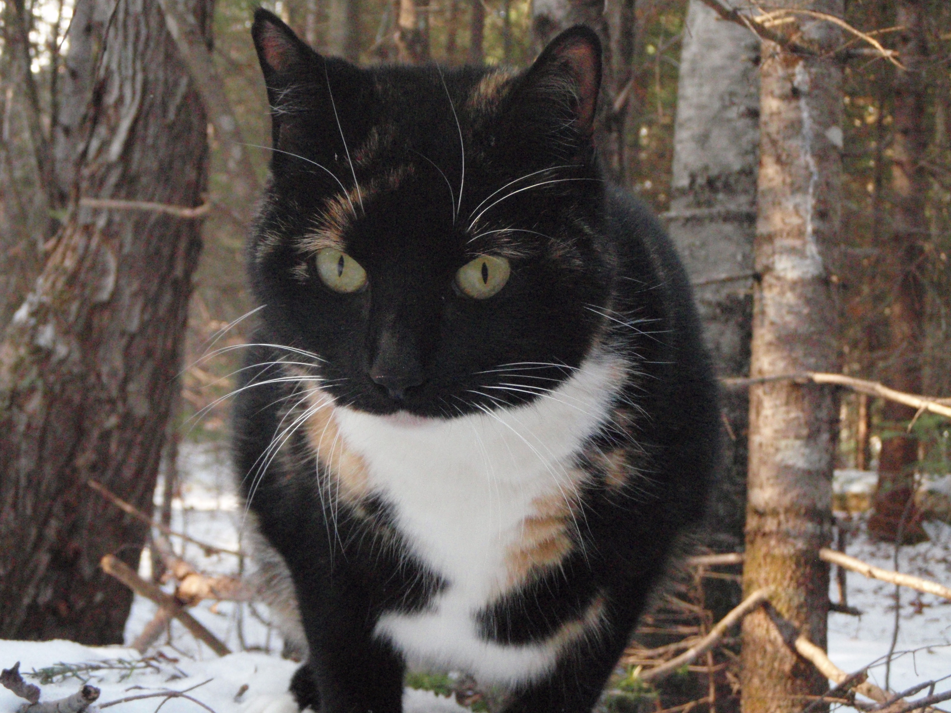 Taking after her mama, Butters also likes to do her own thing in the woods. She is the youngest of our cat pack and we regularly have to call and wait for her to catch up. All the cats meow when we are on our walks but Butters is by far the most vocal.