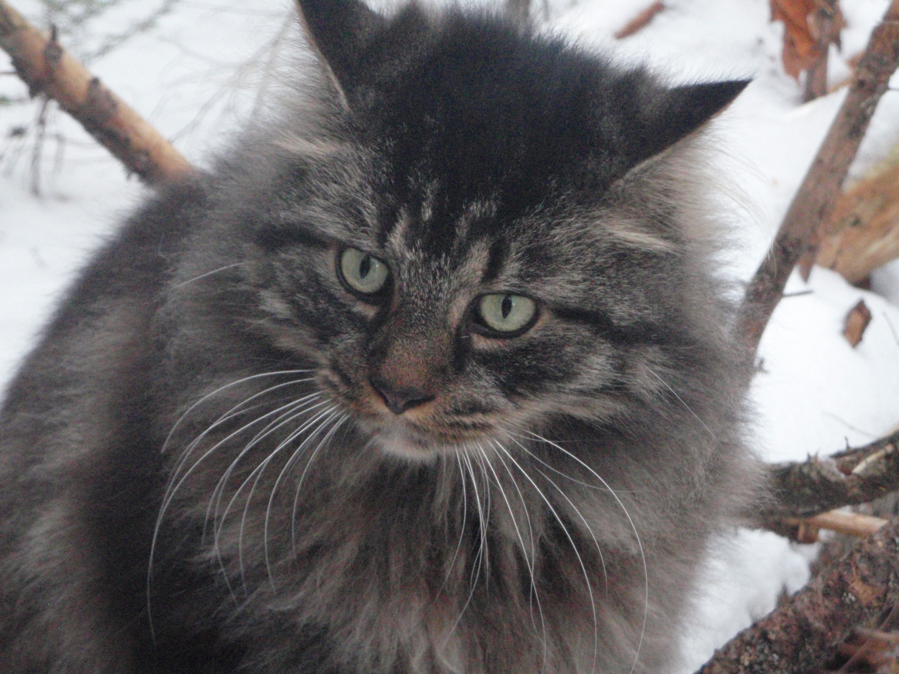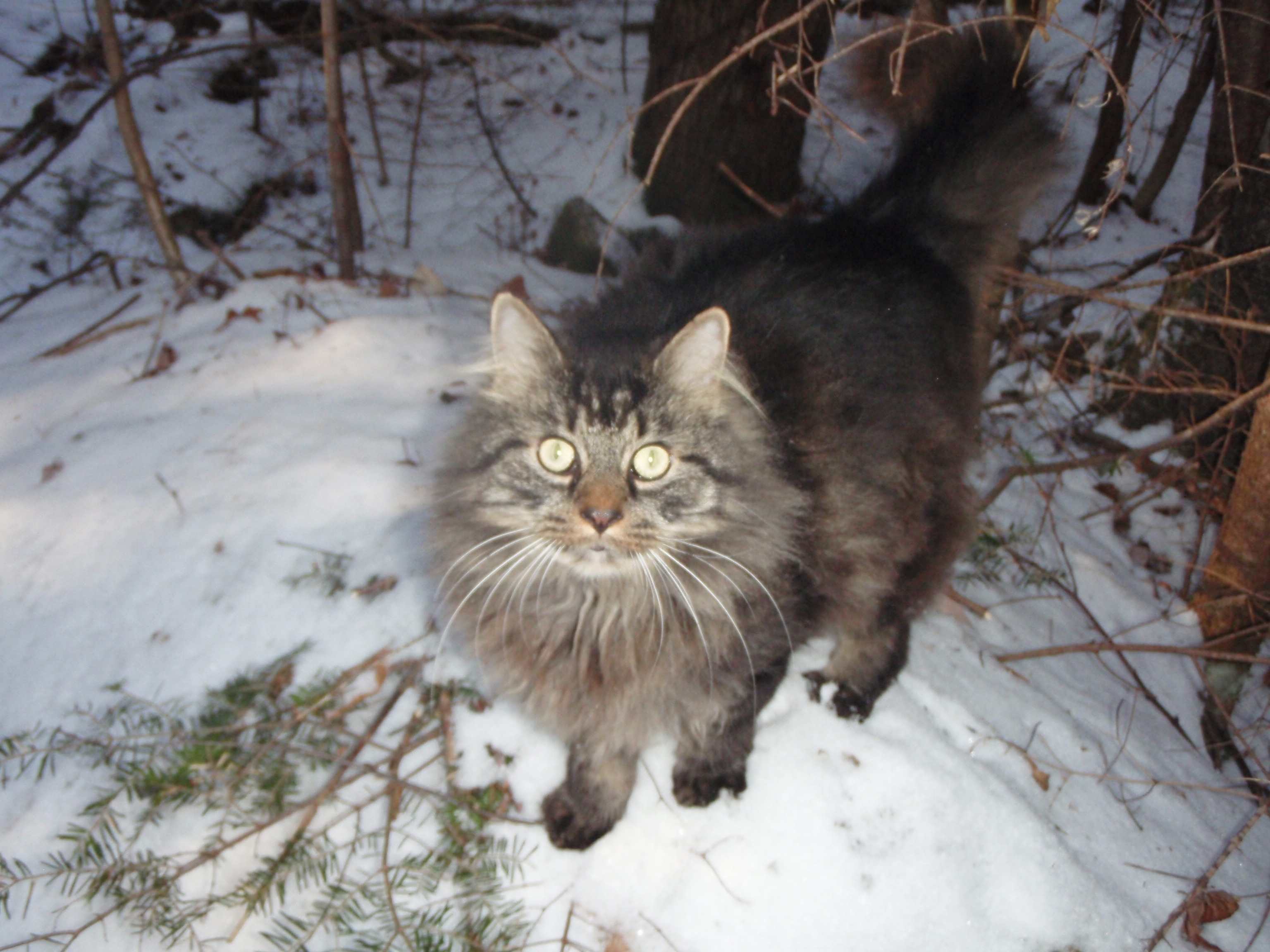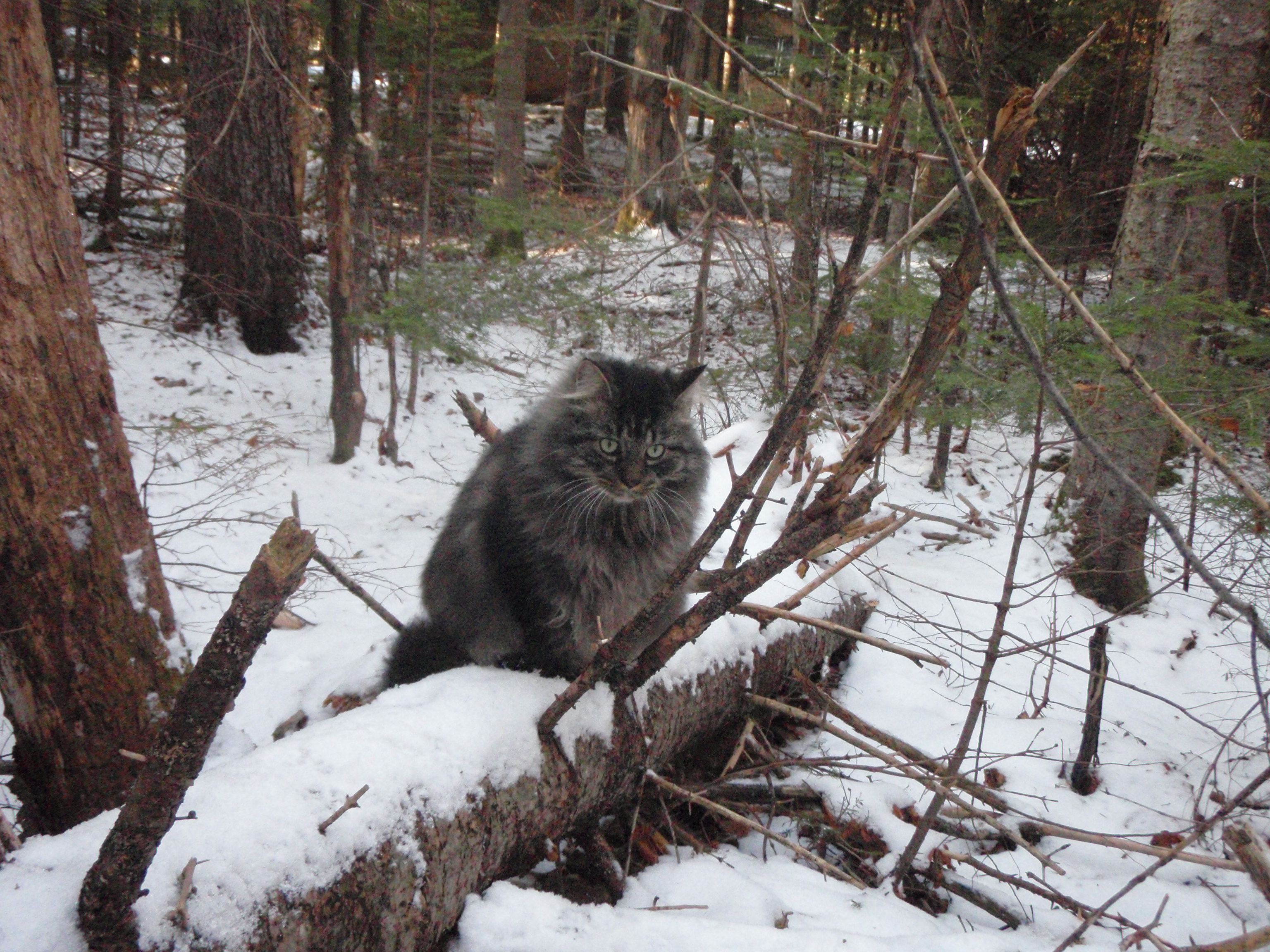 We’ve had Muncy for close to 6 years now, adopting him back when we were living in southwestern NH. We got him as a kitten where he exhibited the classic Maine Coon characteristics of loyalty to his owners but shyness to others. It wasn’t until we moved to northern NH a couple of years later that Muncy became full grown. It was as if overnight he suddently fluffed up. Here he is in his full winter coat.