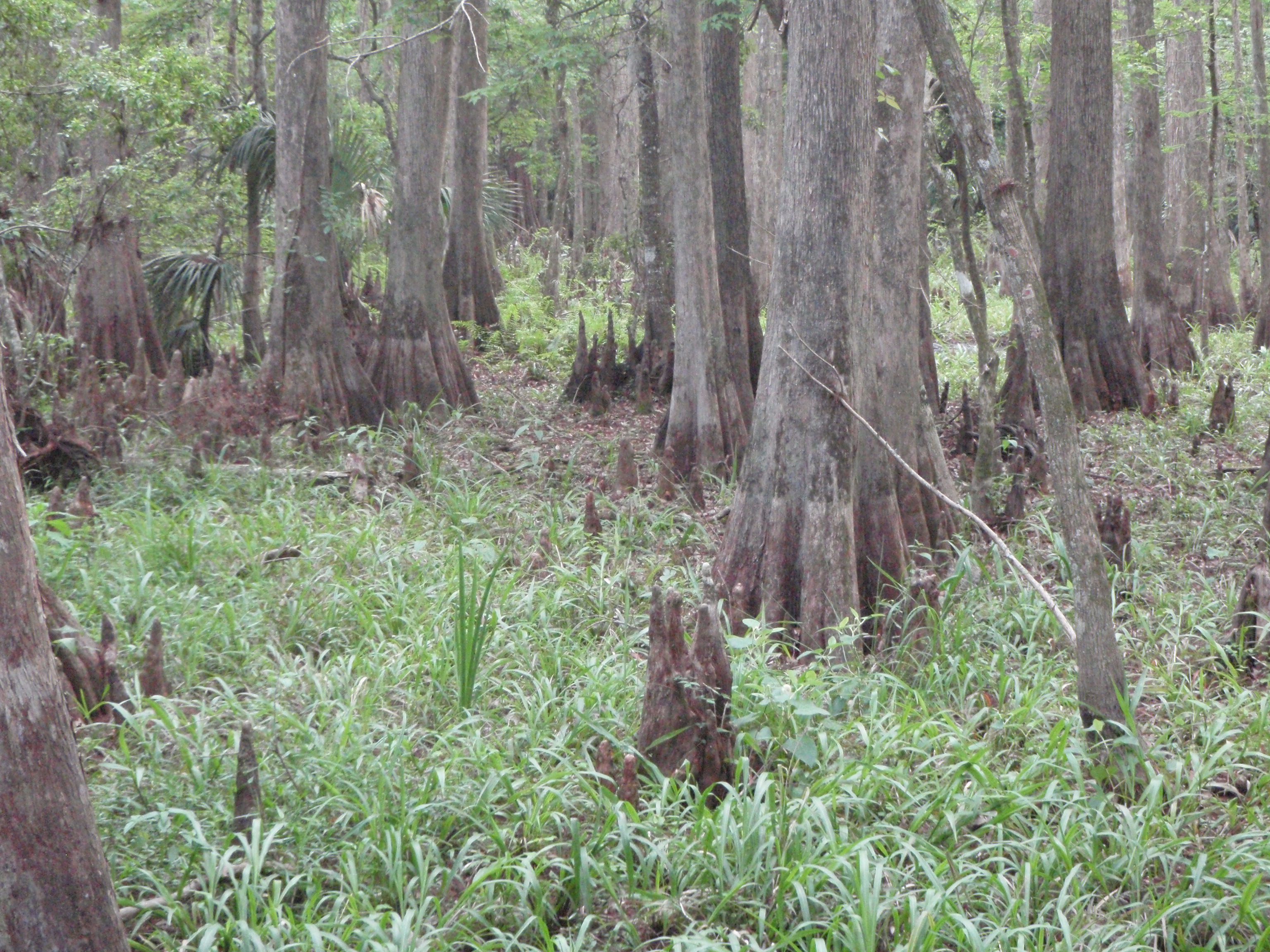 This cypress swamp is still moist enough to grow grasses.
