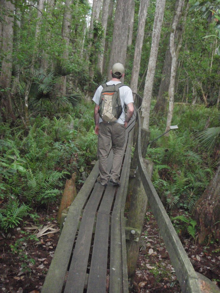 Boardwalks weave through the cypress swamp and keep us high and dry. They also a allow for unique views of the seemingly unconcerned wildlife.