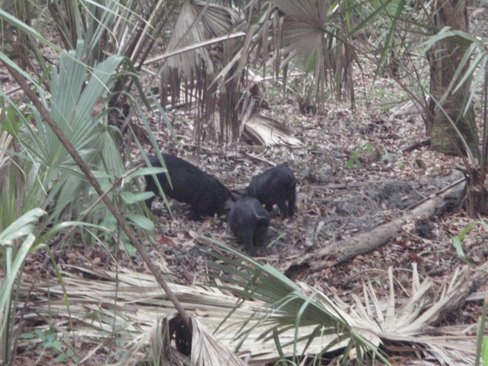 Three little pigs. Actually, there were five of these wild hogs digging up the ground.
