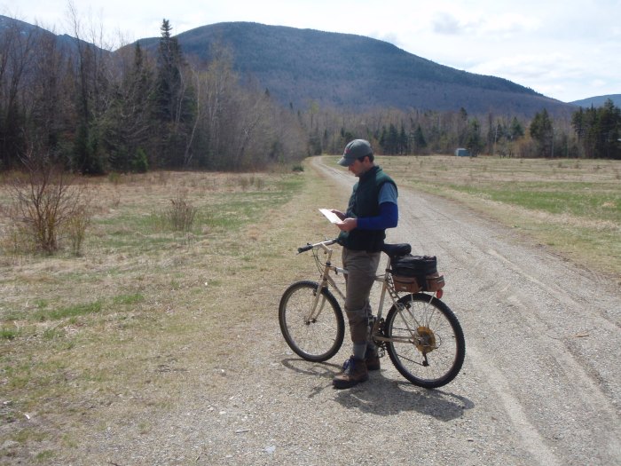 We ate a quick snack and then headed back down to our bikes to continue our westward pedal.  From this point on we were in the Connecticut River watershed and the water flowed next to us in the picturesque Israel River.  After passing through a quiet neighborhood in Jefferson, we stopped for a break and revisited the map.  We were about 1/2 way to Pondicherry and without enough supplies, we knew we should turn around.  We would have to continue along the Israel River to Pondicherry another time.