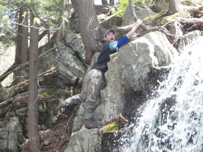 Believe it or not, this is the “best” shot out of 15 as we tried to get a pic of us on either side of Rollo Fall.