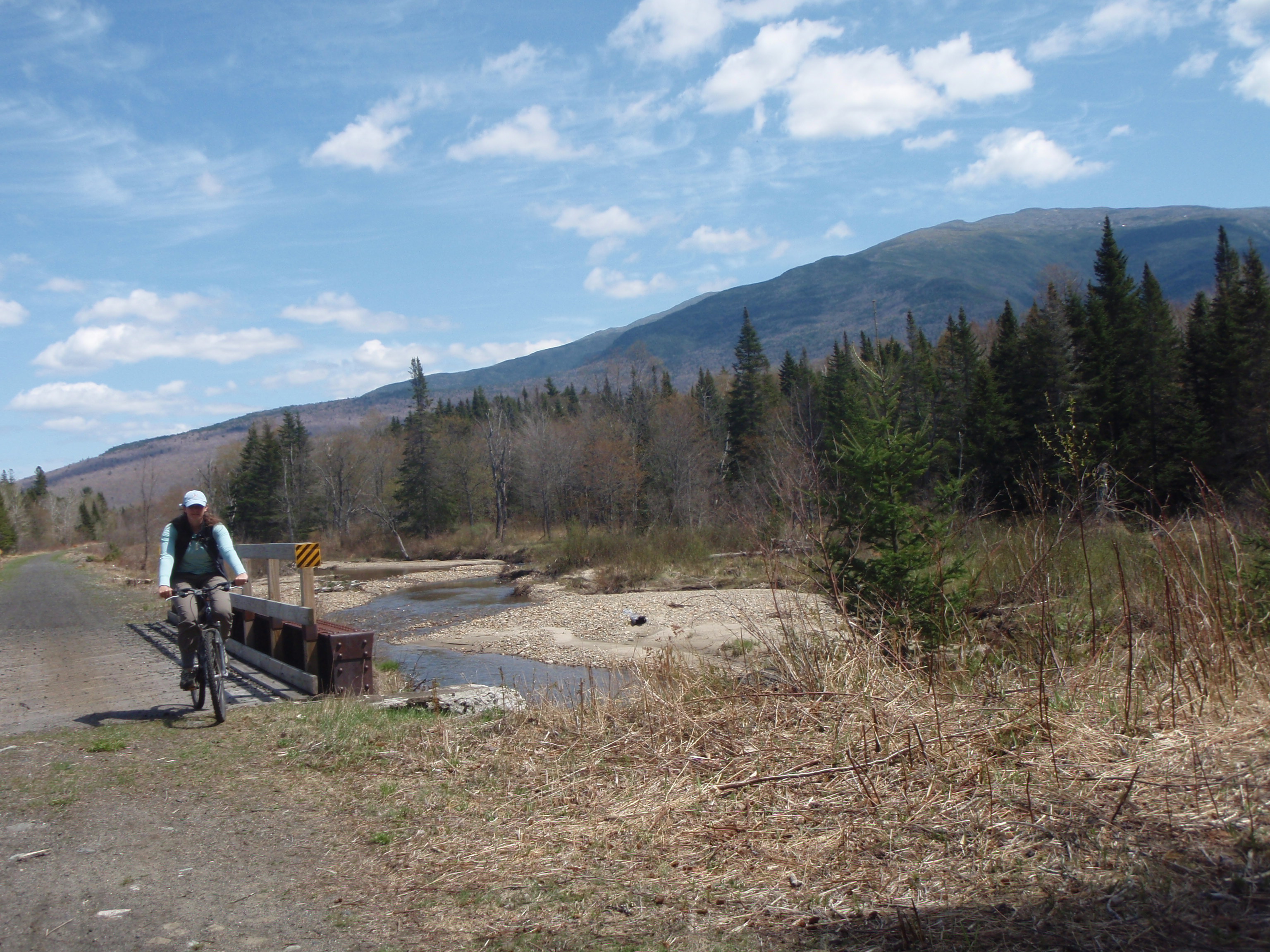 This weekend we dusted off our bicycles, packed our day packs and headed down to the local rail trail.  The closest rail trail to us happens to be just down the street: Presidential Rail Trail.  We’ve biked the section in Gorham, NH several times, but we were interested in checking out the section from Appalachia parking lot and west toward Pondicherry National Wildlife Refuge.  So we put the bikes in the back of the truck and drove to the Appalachia parking lot.