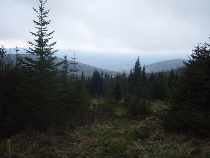 After a Saturday filled with chores and lounging around at home, we were anxious to get outside (away from our yard that is), but the weather was threatening to thunderstorm so we nixed an exposed summit hike.  Recently a friend of ours had said that she enjoyed going to Gadwah Notch in Nash Stream State Forest and had described a fairy tale land where animals popped out from behind the trees along the way.  What?  This description certainly peeked our curiousity.