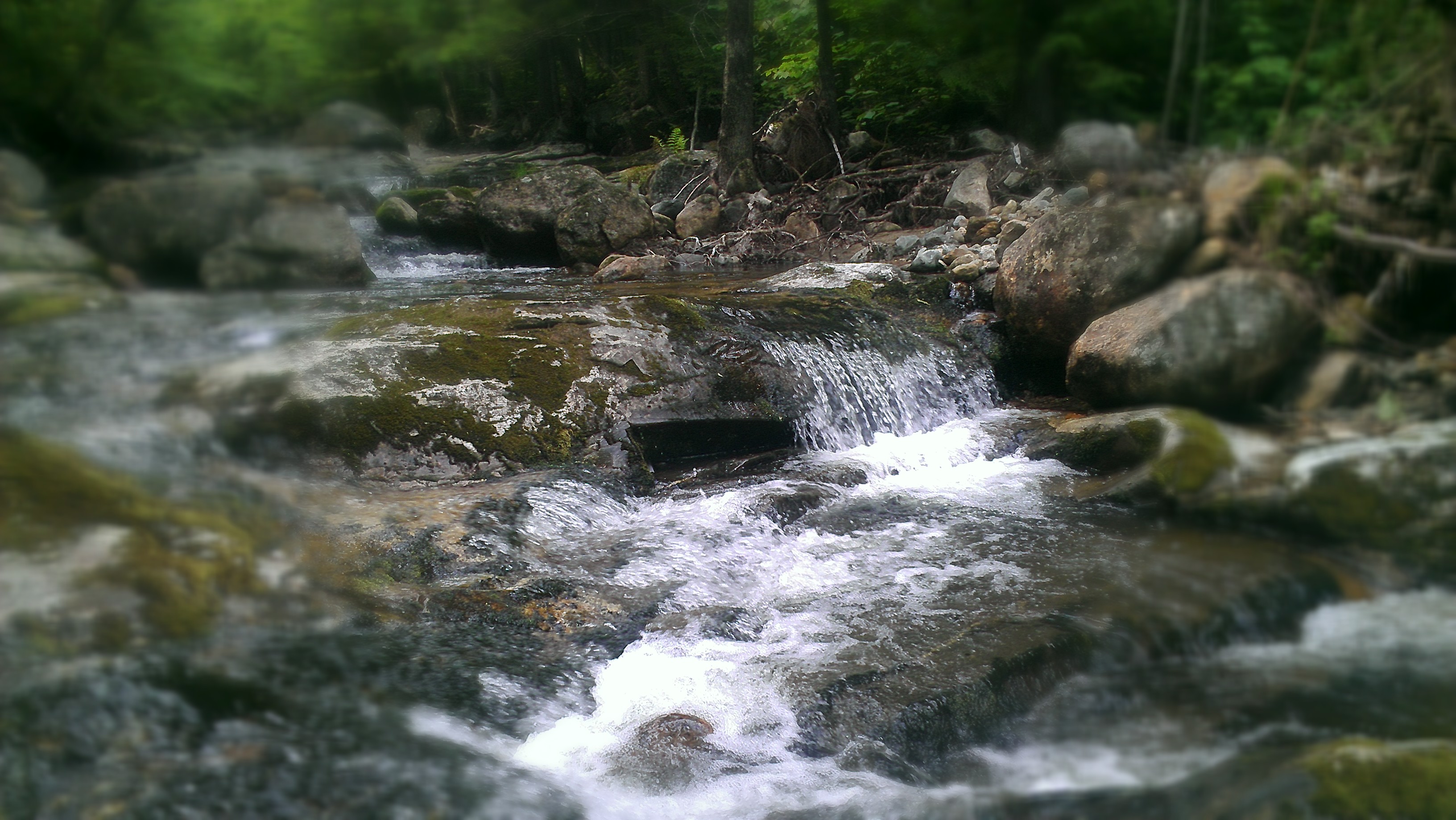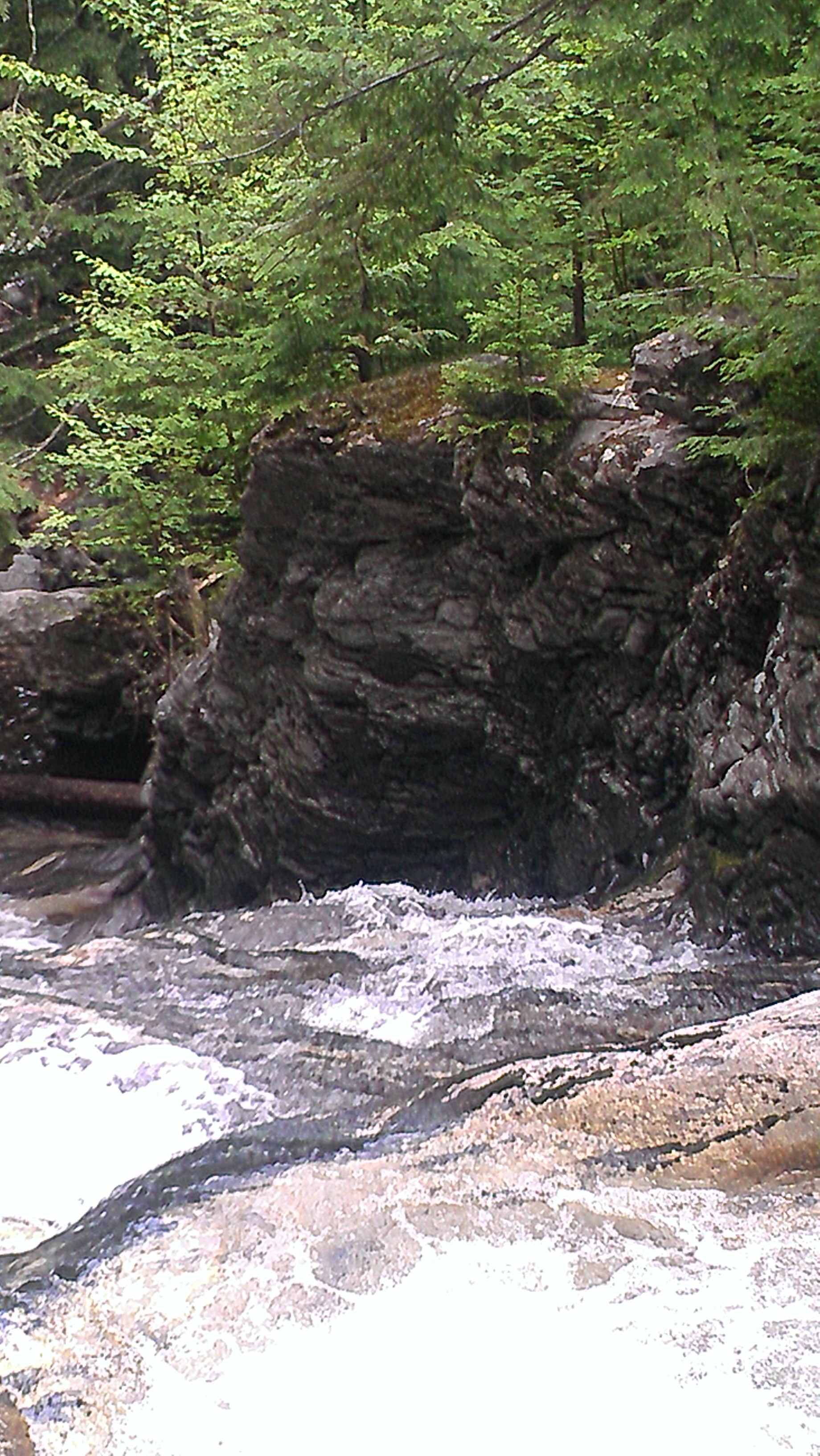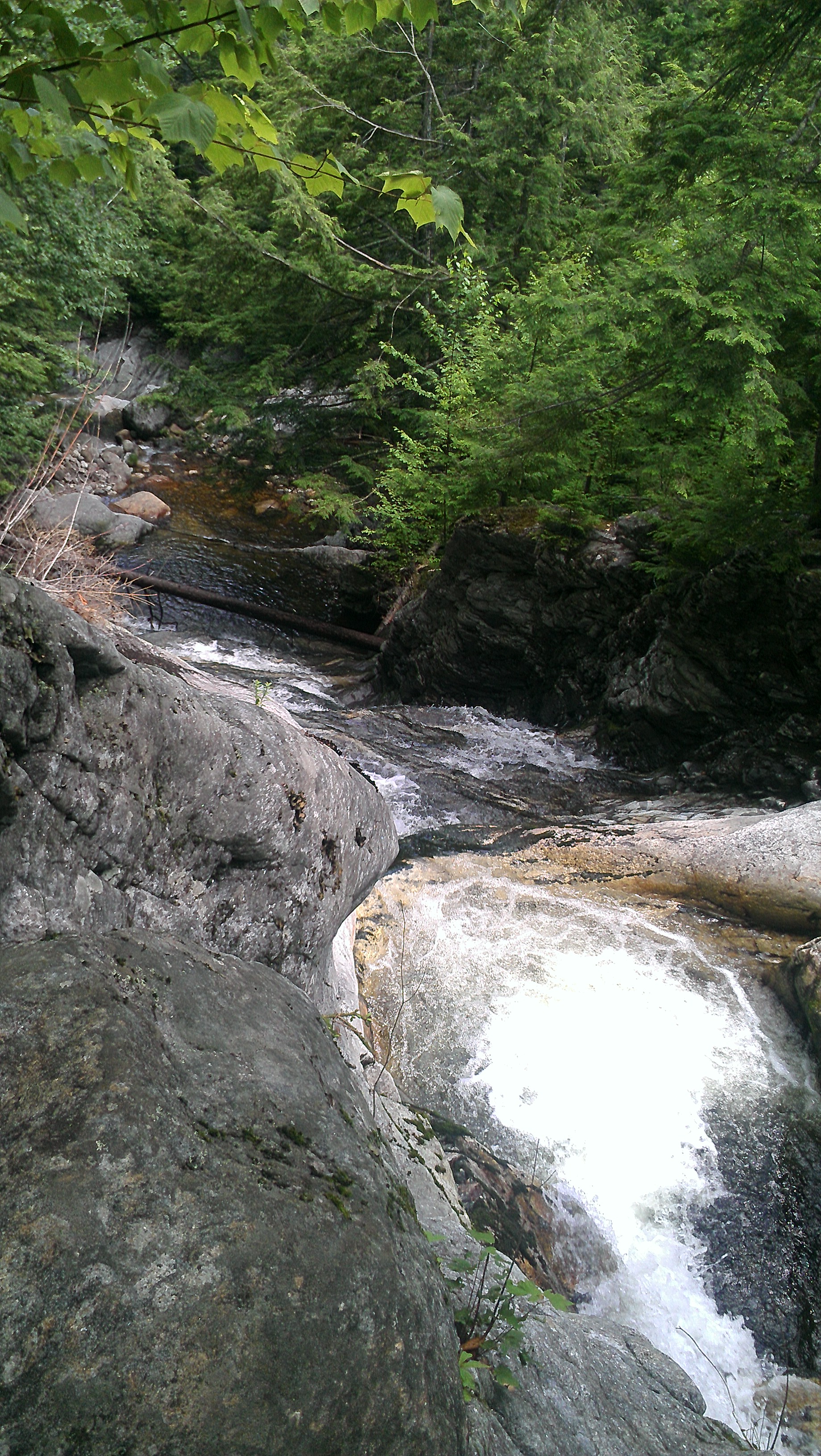 We passed a couple with two dogs with full hiking gear, even the dogs had packs. They must have hiked further than Winnewata Falls.  The trail follows alongside Miles Brook which flows into the Ellis River.  After 15 minutes or so, the trail swings close to the water again with some bootleg trails to pretty cascades.  We checked the map and gps to find out if we had made it to Winnewata Falls.  It looked close and we walked up the trail further to see if there were any more dramatic falls.  We never found a sign that indicated we were there, but our maps said that we were there, or maybe a little above now.  This must be the falls.