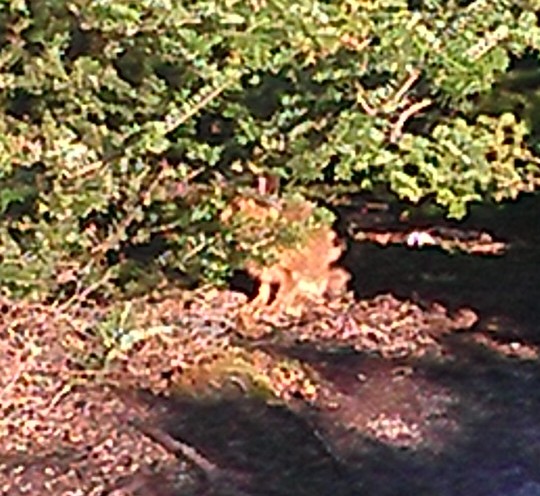Not the best photo, but trust us, this is a small brown snowshoe hare hanging out at the summit of South Kinsman Mountain.