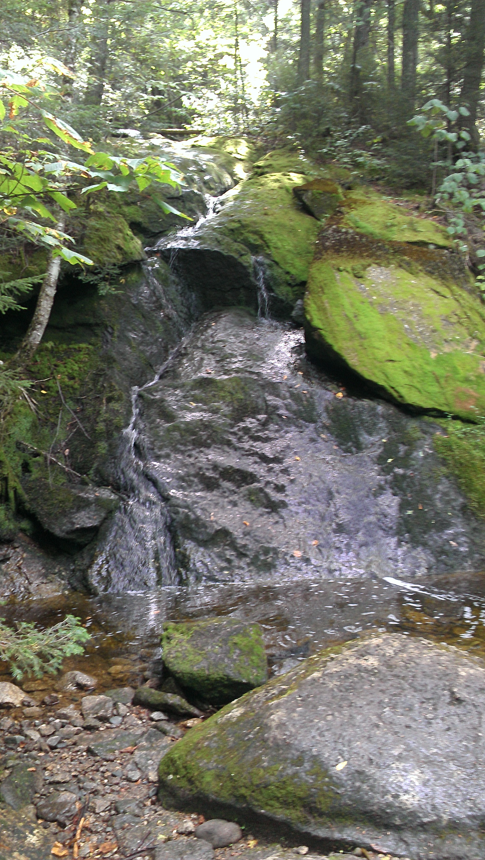 The next water crossing exhibited a neat mossy ledge.  But we didn’t linger because we wanted to find the Flume that was promised at an upcoming water crossing.