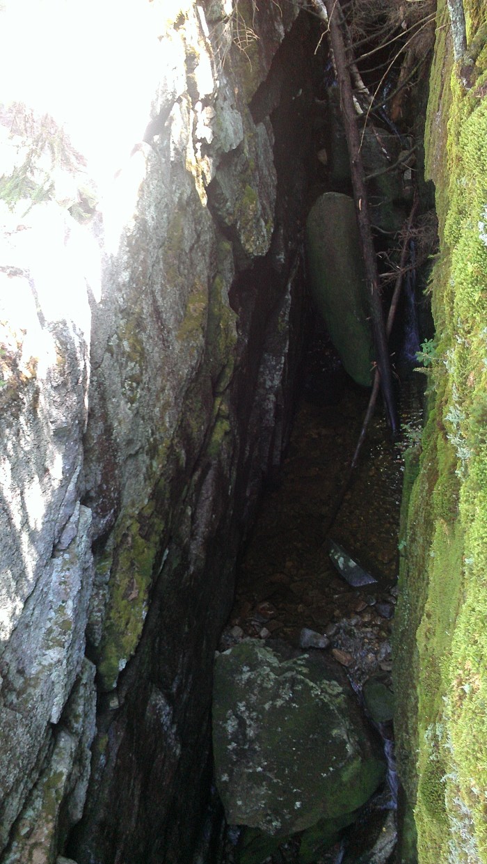 The next water crossing was Flume Brook and on the downhill is a sign for the Flume.  We took the short and narrow trail down to view the small Flume.