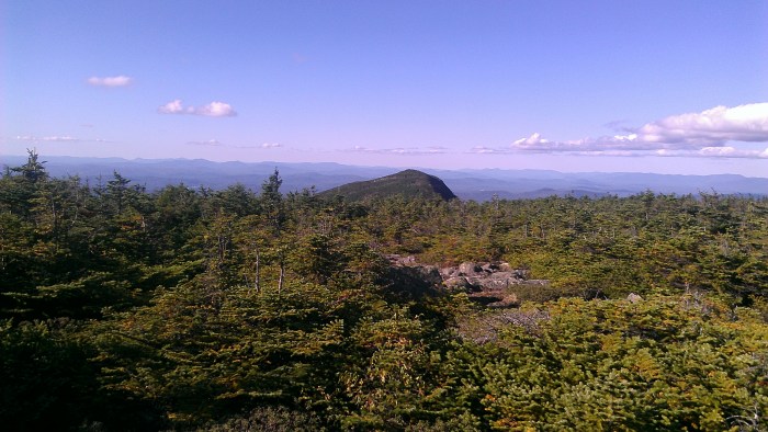 We checked the time and realized we better get a move on.  We made our way back to North Kinsman and down to a view that we passed earlier.  Two Appalachian Trail hikers greeted us and asked us if we’d seen Billy Jack on South Kinsman. We hadn’t and wished them luck as we continued back down to the Mount Kinsman Trail junction.