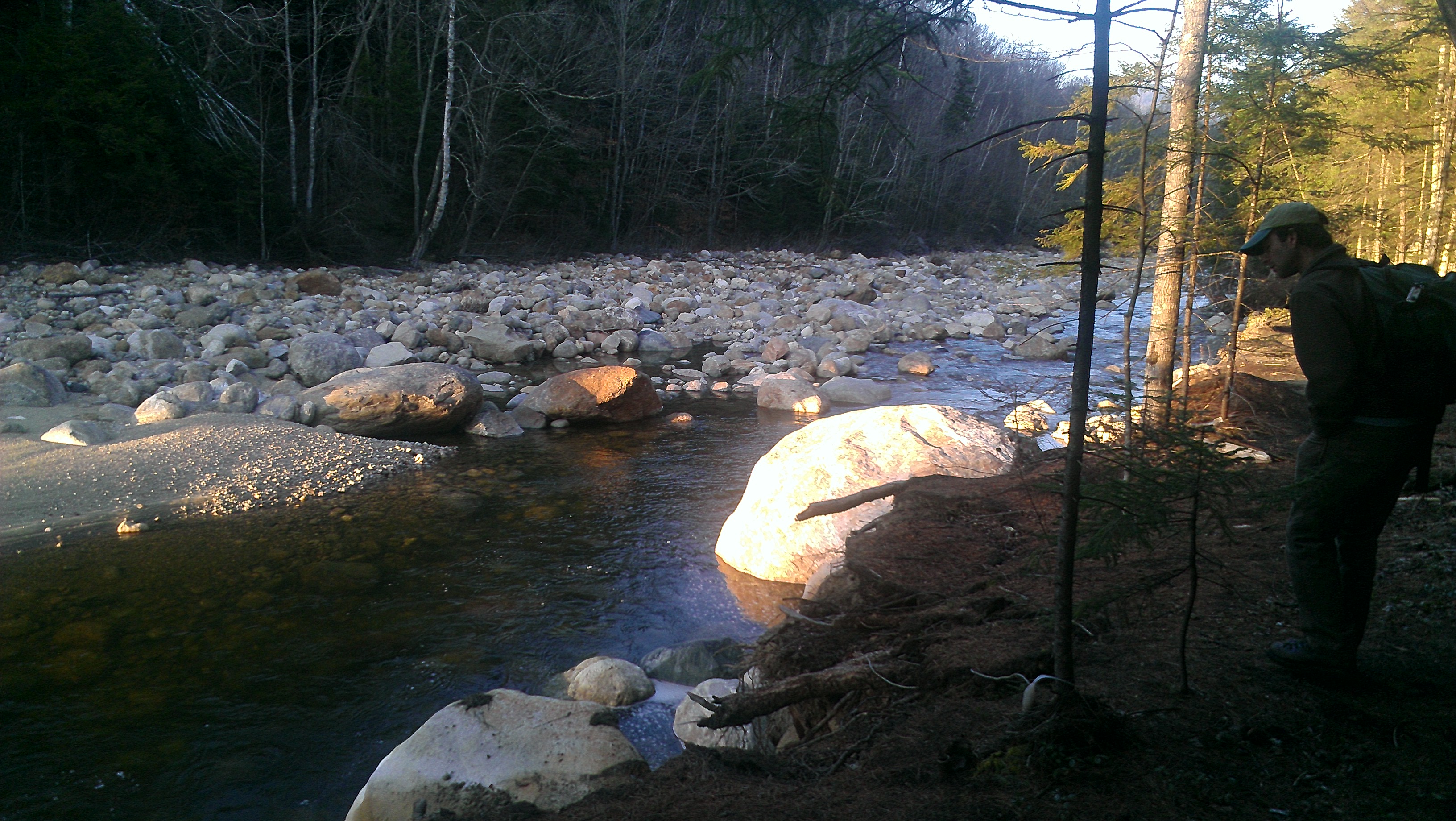 So, we turned around and made our way back down the trail to the parking lot. But we had to take a peek at the Hurricane Irene damage on the Wild River so we hiked about a quarter mile up the valley on the Wild River Trail. Sections of the trail still looked ravaged and the sides of the river still looked freshly torn from the strong water currents, but some looked more recent from Hurricane Sandy.
