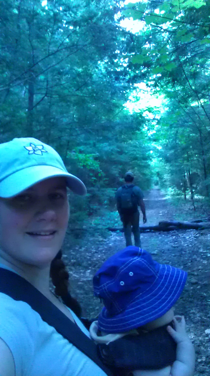 The trail easily makes its way through the woods, over an old landslide to the head of Moriah Gorge. You can hear the waterfalls within the gorge before you can see it. There were some kids climbing through the gorge with fishing poles looking for the perfect fishing hole. We stopped for a break and diaper change (for Alden that is) while Andrew explored the gorge.