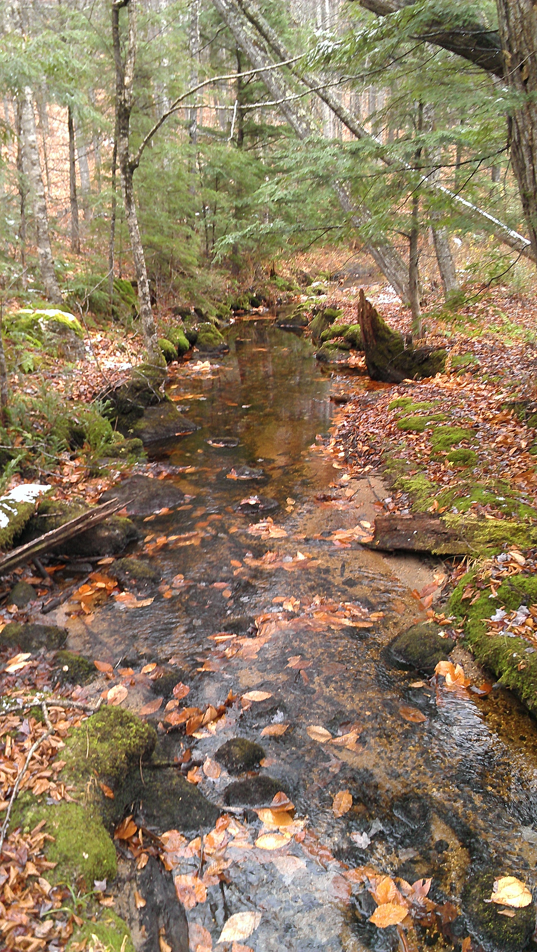 We followed the Shell Pond Loop trail that veered off the driveway before the houses. The weather had turned cold over the week and we were bundled up in our winter gear to stay warm. The trail was pleasant and easy to follow running a short distance above the pond for this leg of the hike.