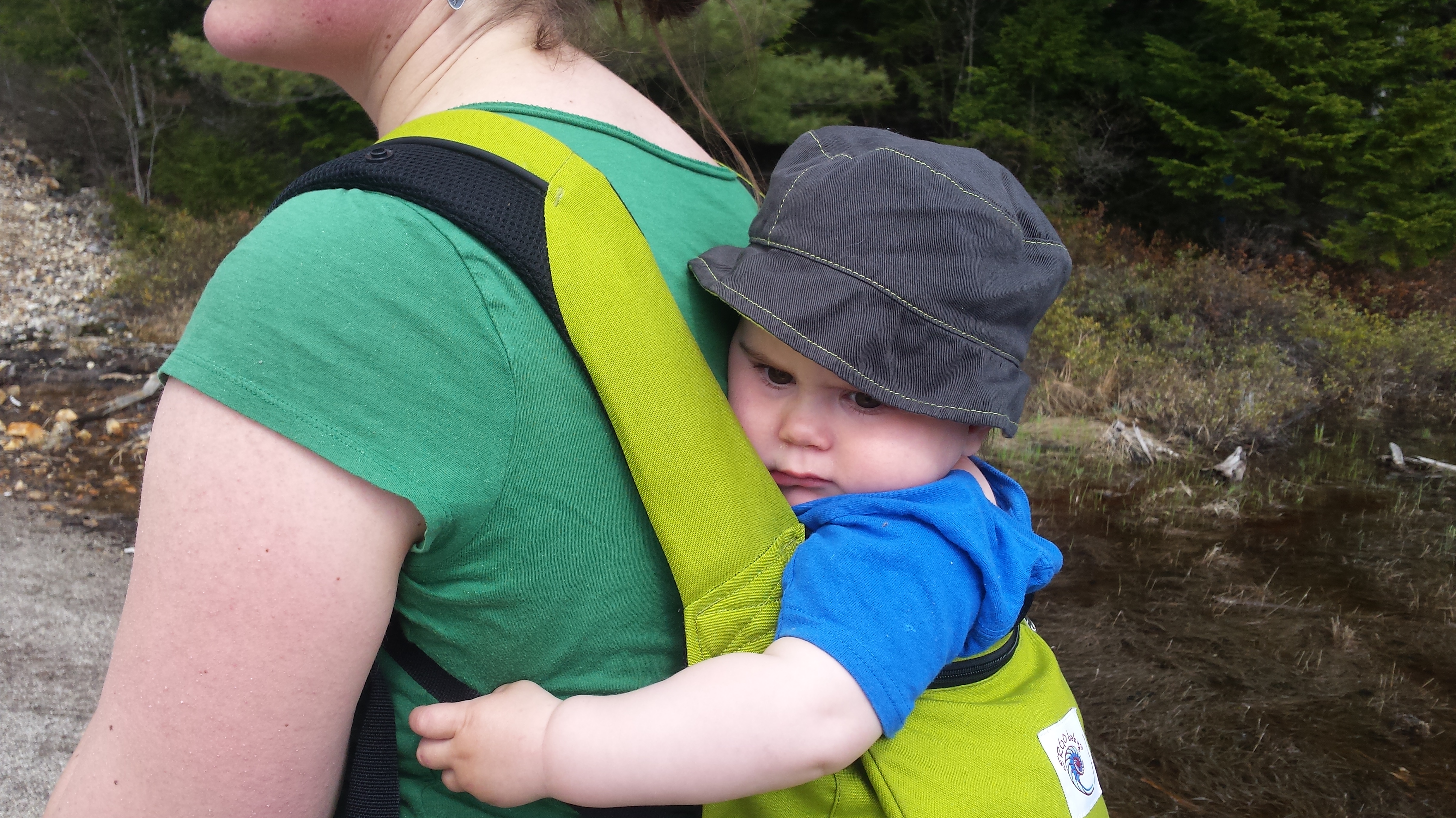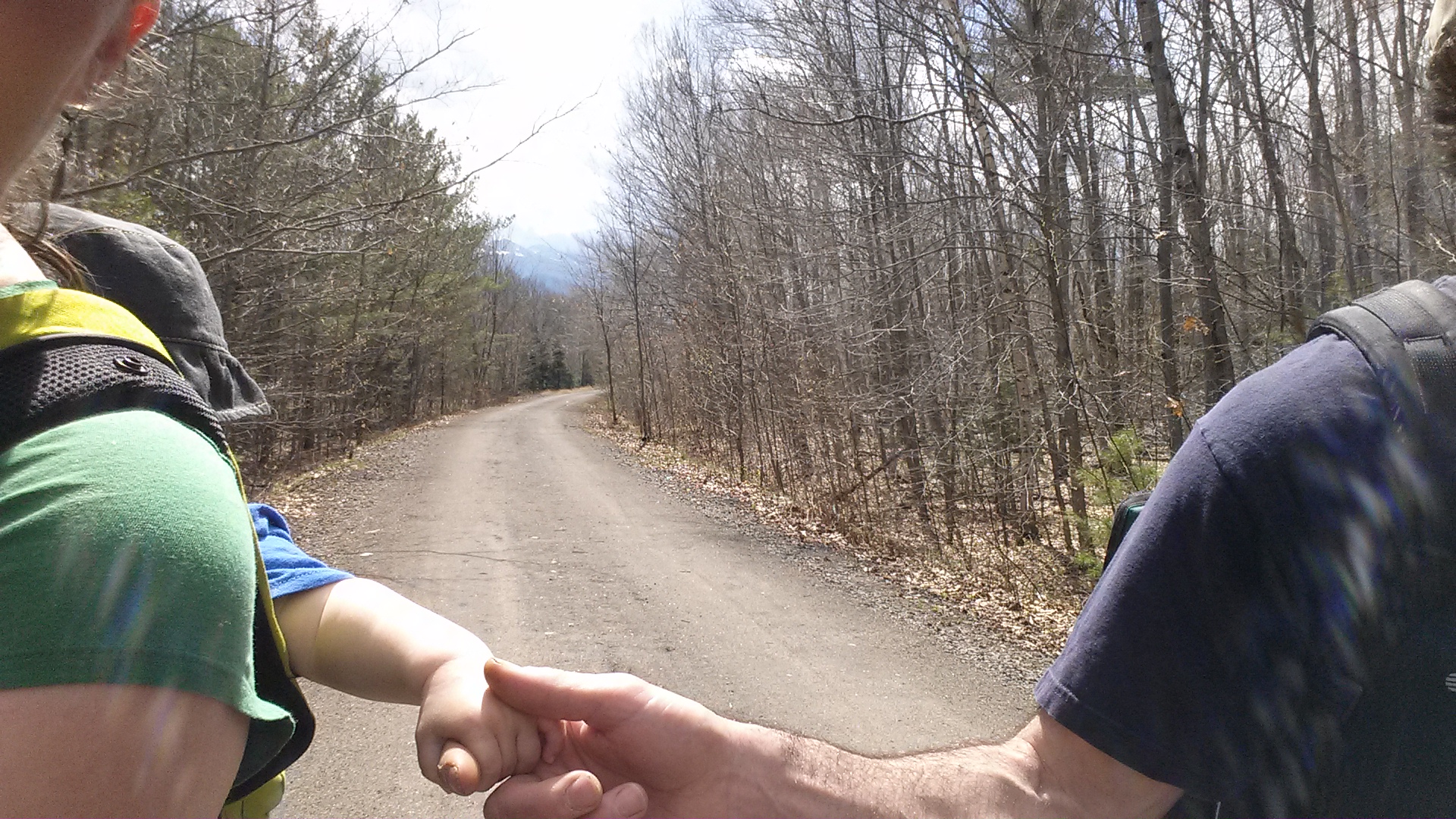 After a half an hour or so, we packed up and start heading back down the trail, guessing that the car would be ready soon. Alden fell asleep and we walk in silence opting to take the mountain bike trail to stay in the woods. The trail wound around and around, creating a long interesting trail, but on foot it only made for a tedious hike. Lindsay silently wished for the trail to end because Alden seemed to get heavier with every step, but the trail just kept winding back and forth within the strip of woods. Seeing Lindsay’s anguish, Andrew suggested to bushwack back to the dirt road. You wouldn’t believe how little distance we had traveled! The last 30 minutes on the mountain bike trail could be covered in less than 10 minutes if we had stayed on the hiking trail. While this trail is probably great fun on a bike and the miles could be covered quickly, hikers will probably want to just stay on the hiking trail (especially if they are carrying a 26 lb baby on their back!).
