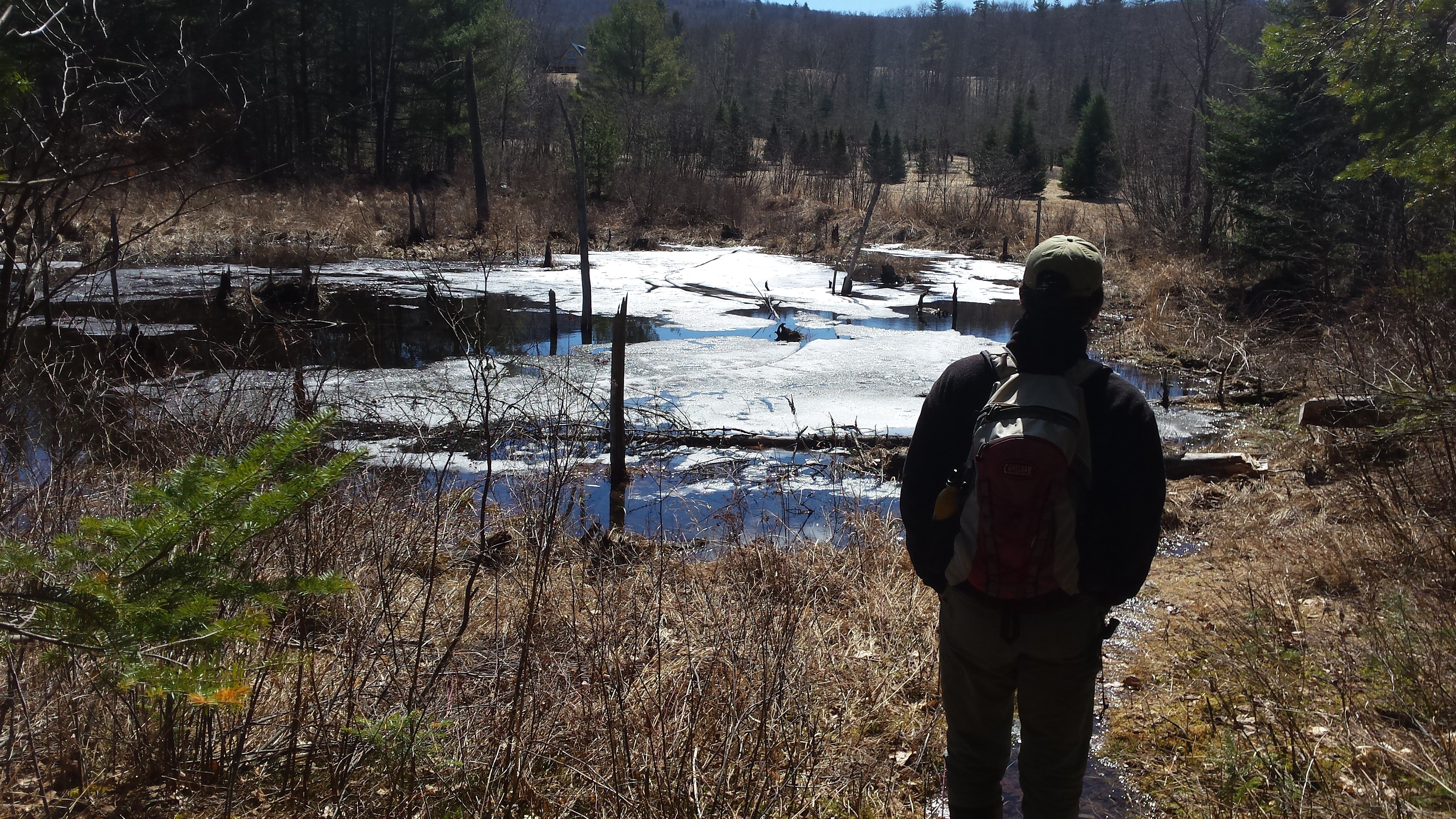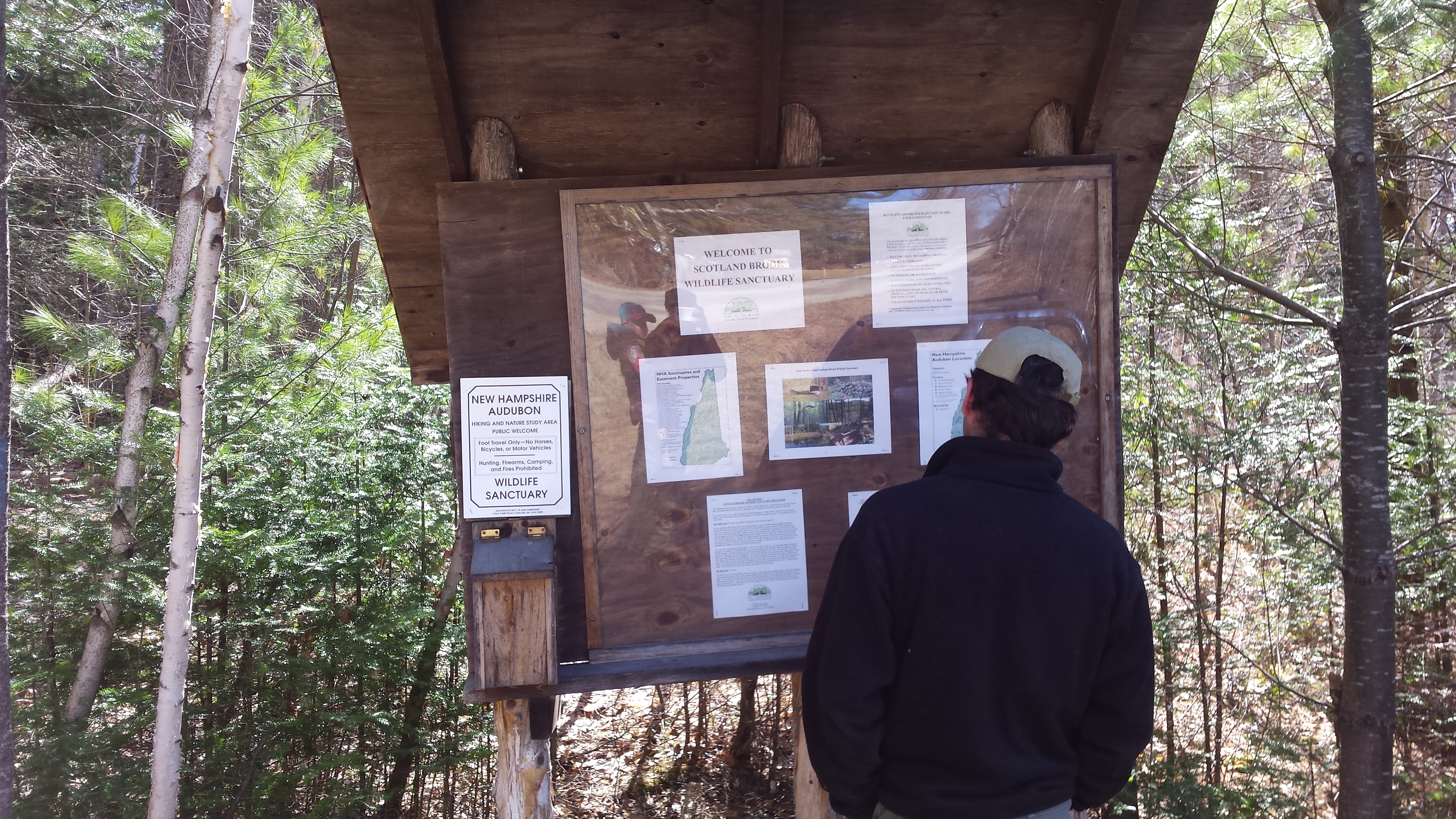On the weekend before last, we loaded up in the car and made our way over to Jim Noyes Hill Road in Landaff, NH to hike NH Audubon’s Scotland Brook Wildlife Sanctuary.  We didn’t find a lot of good information on NH Audubon’s website, but we did find some great information from fellow hiker and blogger, 1HappyHiker (http://2small2bbig.blogspot.com/2015/02/a-winter-visit-to-scotland-brook.html)  The quiet back-country roads to get to the trail head were fun and beautiful, a pleasant close to home drive for an early spring day.