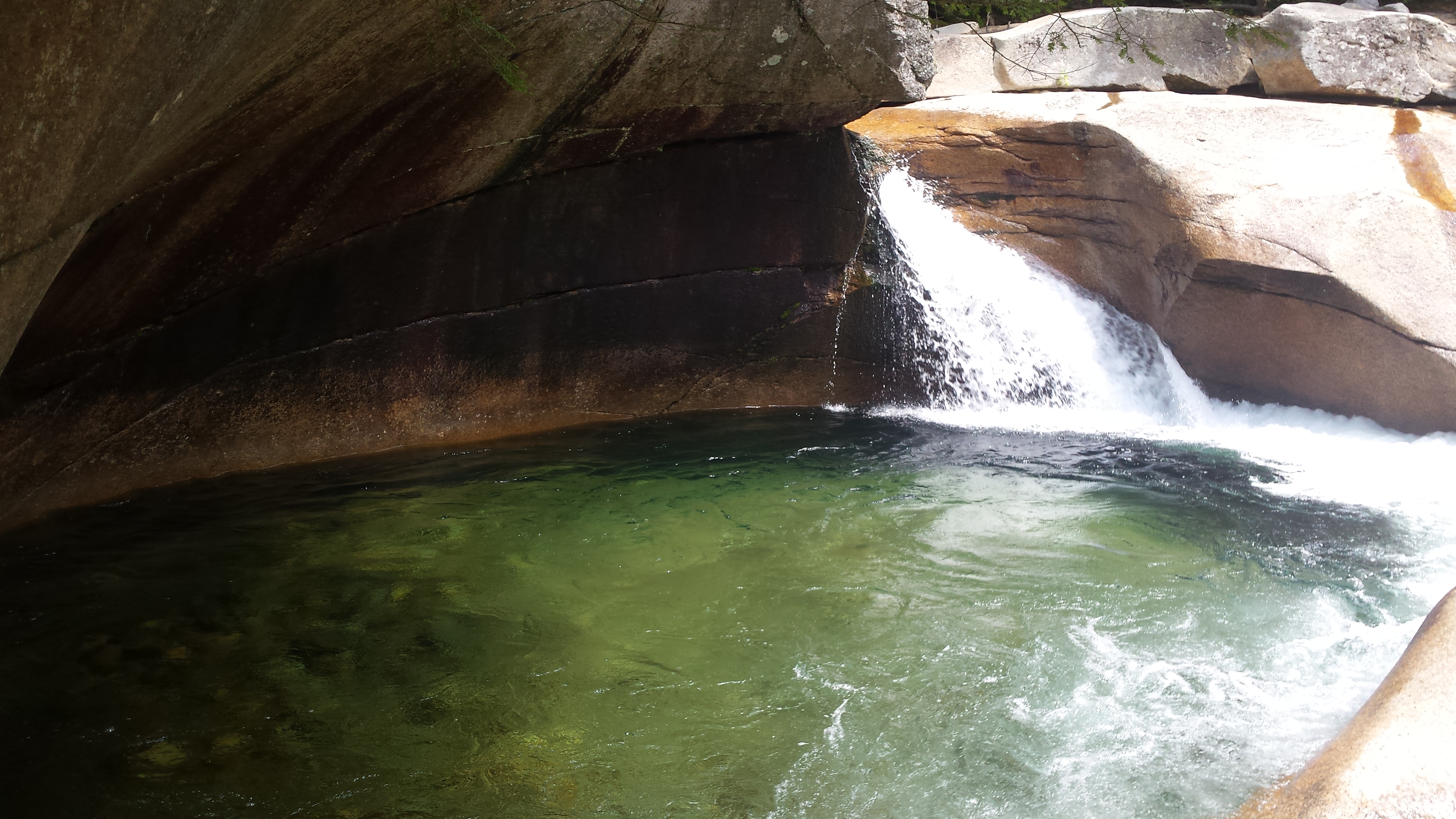 Last weekend we beat the heat by heading to The Basin in Franconia Notch State Park in Franconia, NH.  The Basin is one of many roadside natural attractions in the park, that has well developed accessible trails that showcase the dramatic beauty.  Our friend Sarah joined us for this adventure too!