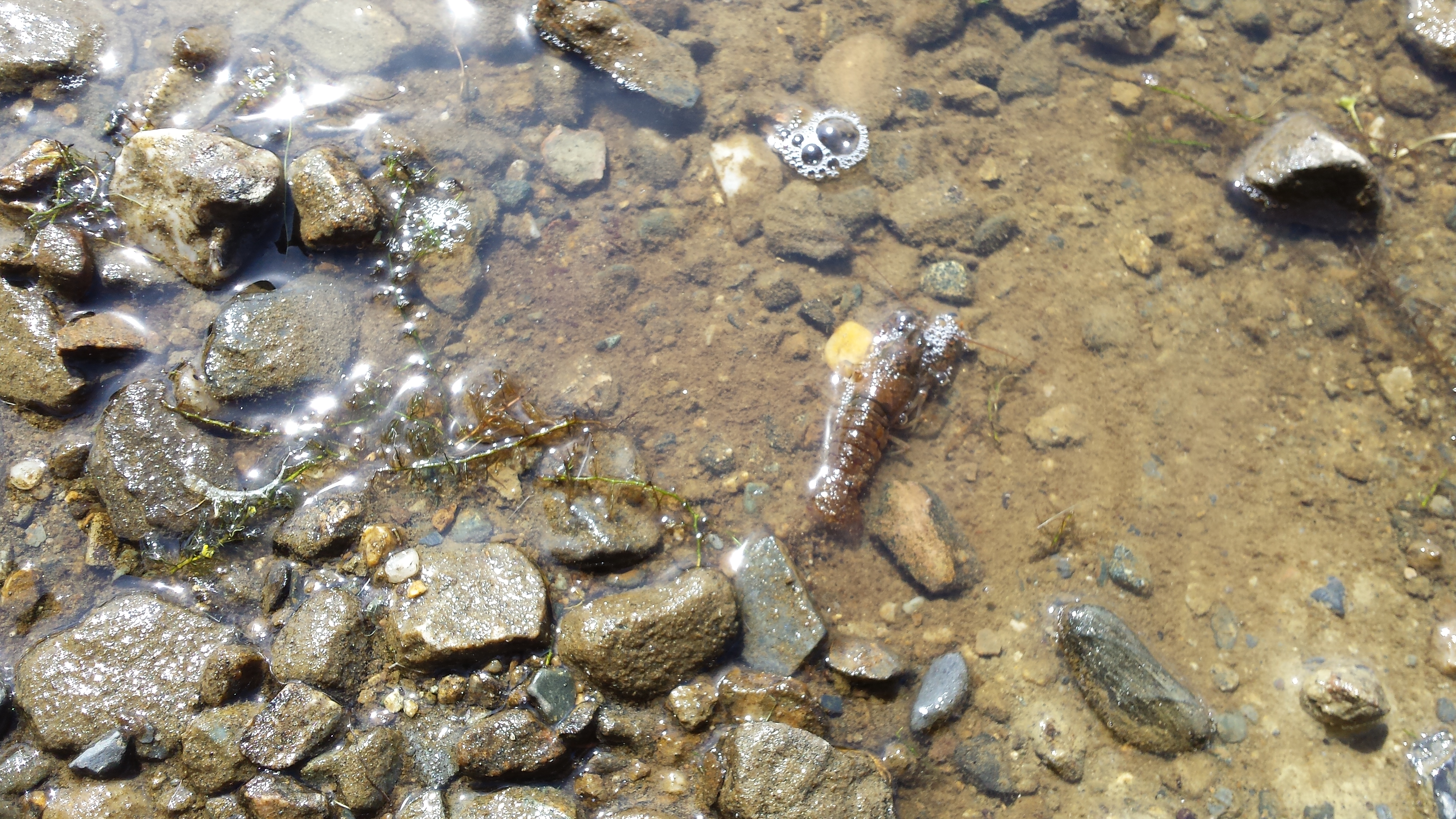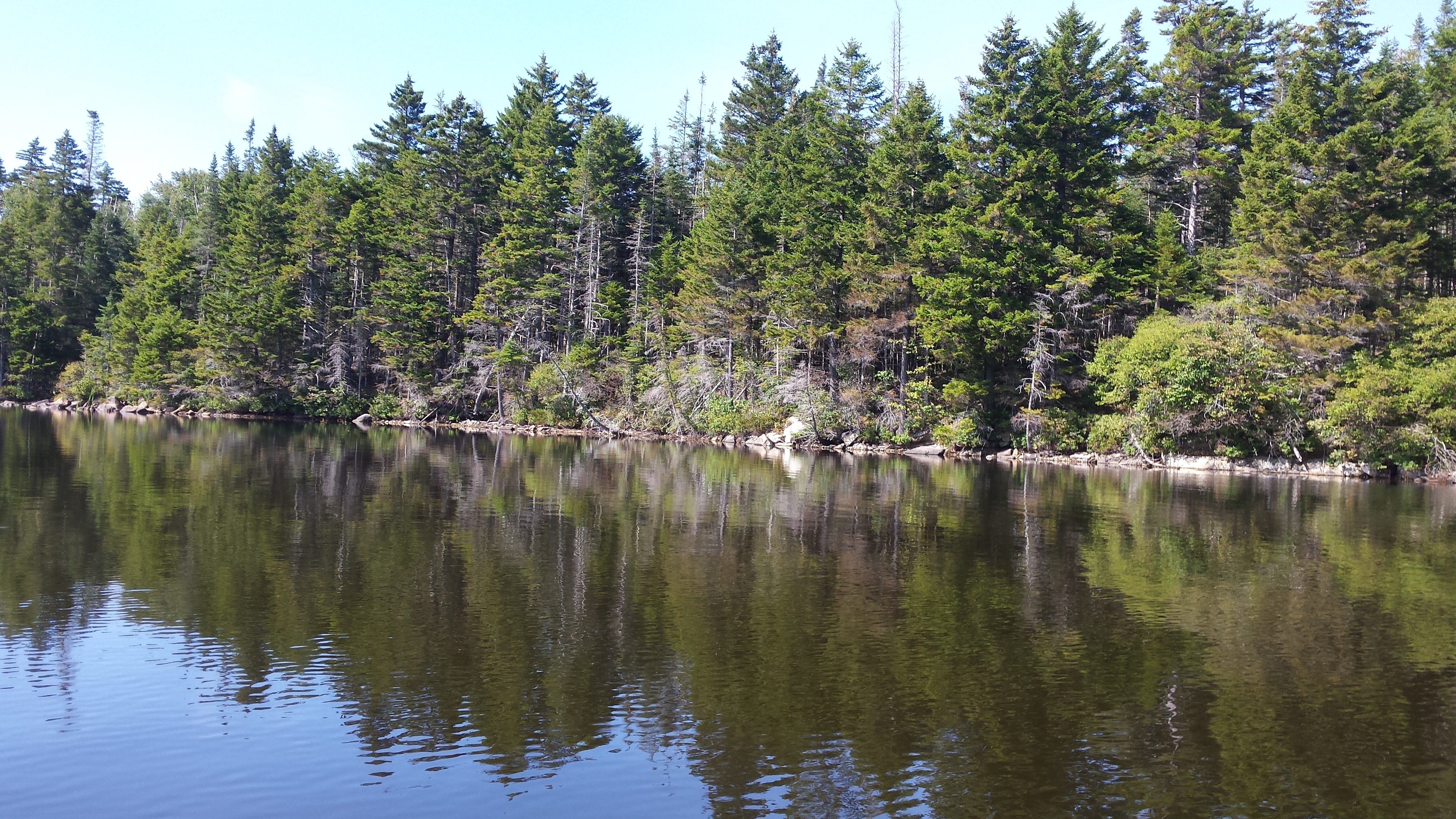 We took our time, paddling on the western edge of the pond heading south. The pond is surrounded by a spruce-fir forest, making little opportunities for shade along the shore (unlike a hardwood forest shoreline with its’ overhanging maple tree branches). However, this type of shoreline seems to evoke a more secluded feeling.