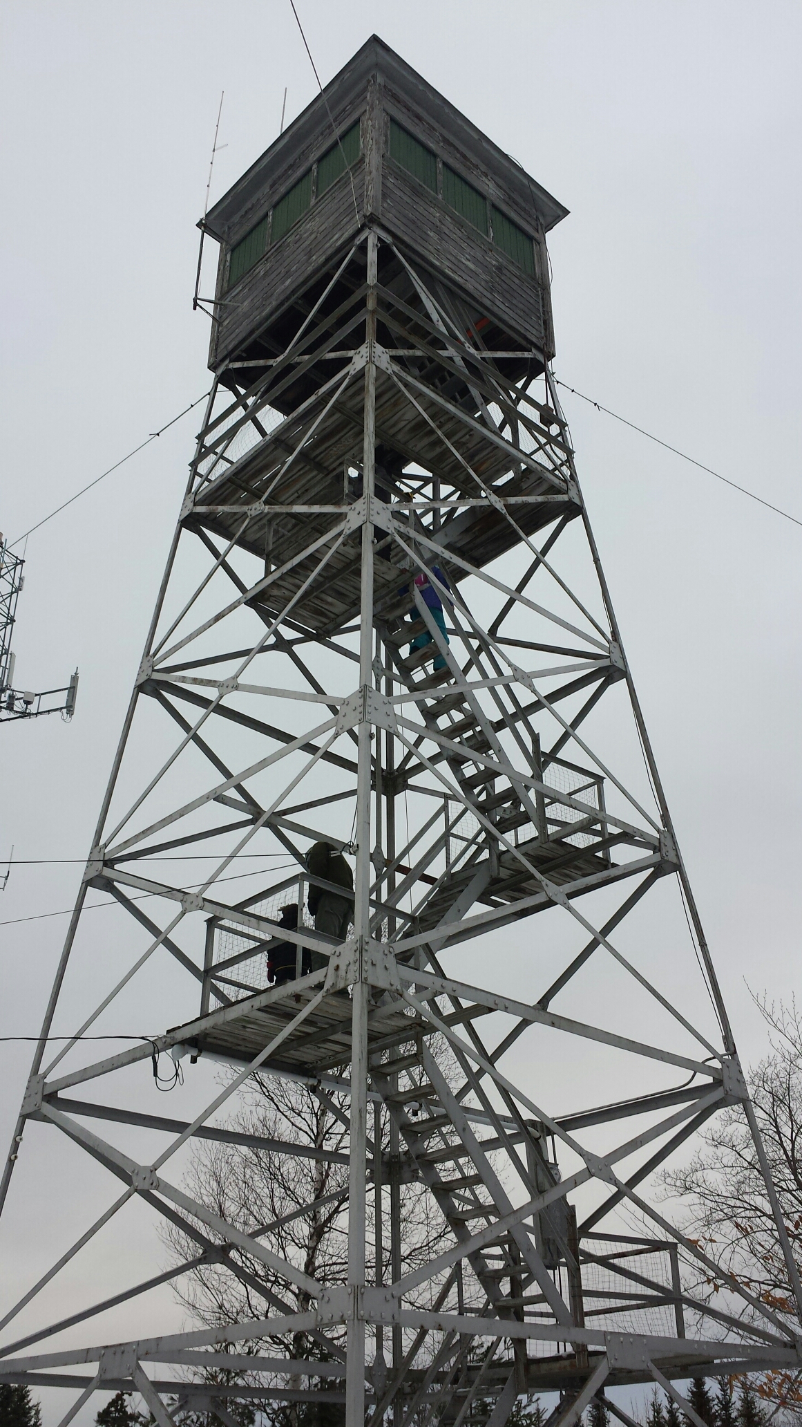 After the official ceremony we headed up the trails to the fire tower to check out the view. Andrew on skis, Lindsay on snowshoes, and Alden in the sled. We made a snowman at the summit next to some other friends that were doing the same and Alden insisted on climbing to the top of the fire tower not once, not twice, but three times.