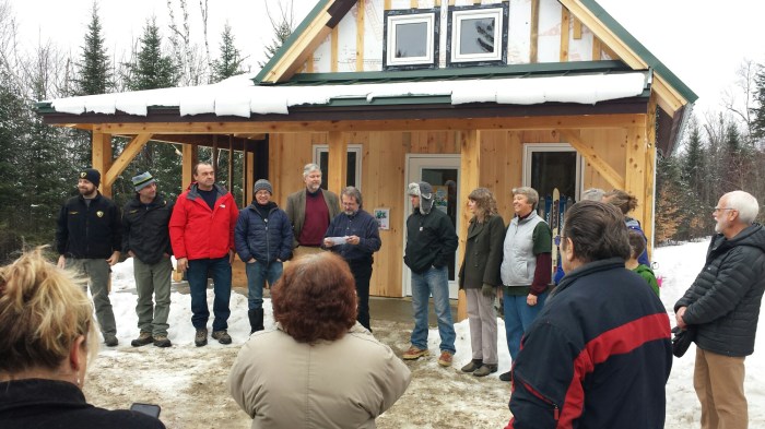 Last month, the nearly completed Warming Hut had its’ grand opening and we all attended the affair. Andrew works for NH State Parks and was integral in getting the warming hut completed. The gathering of all the partners and friends was a great moment on this winter afternoon.