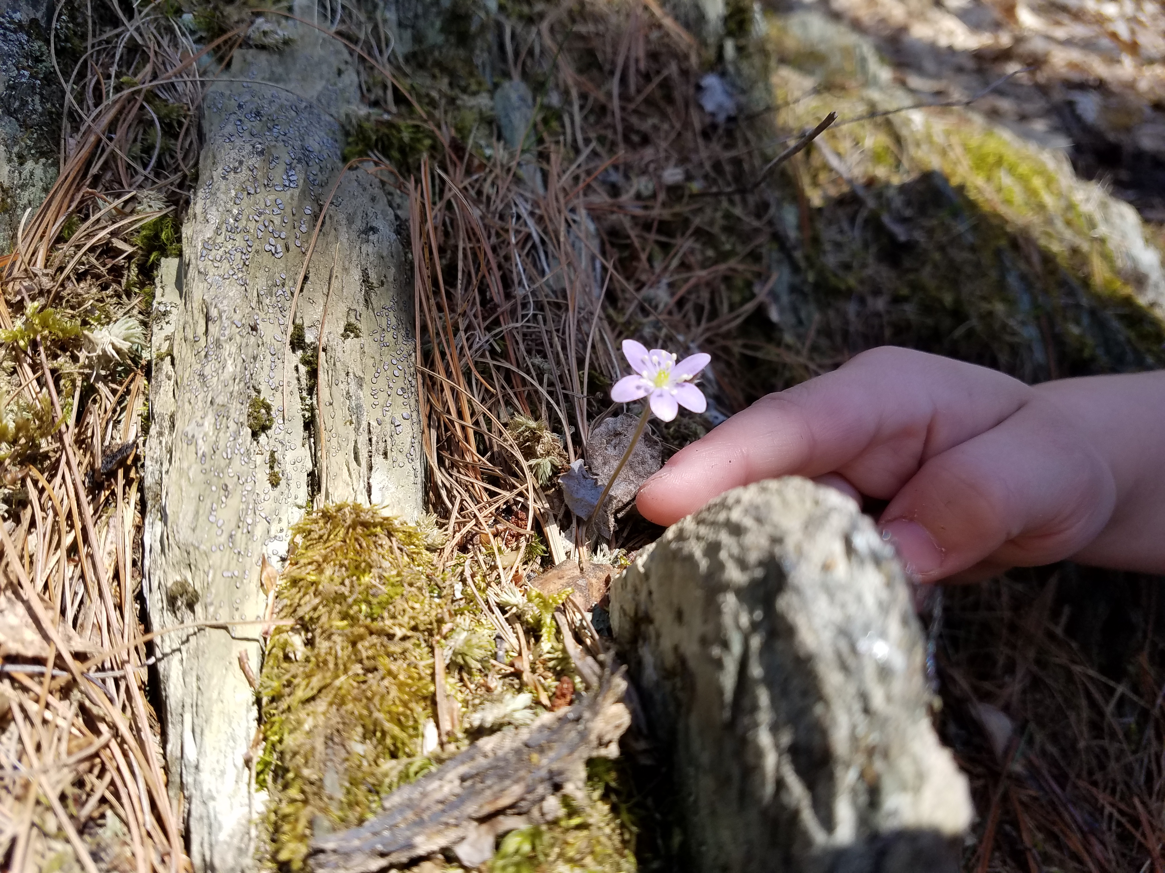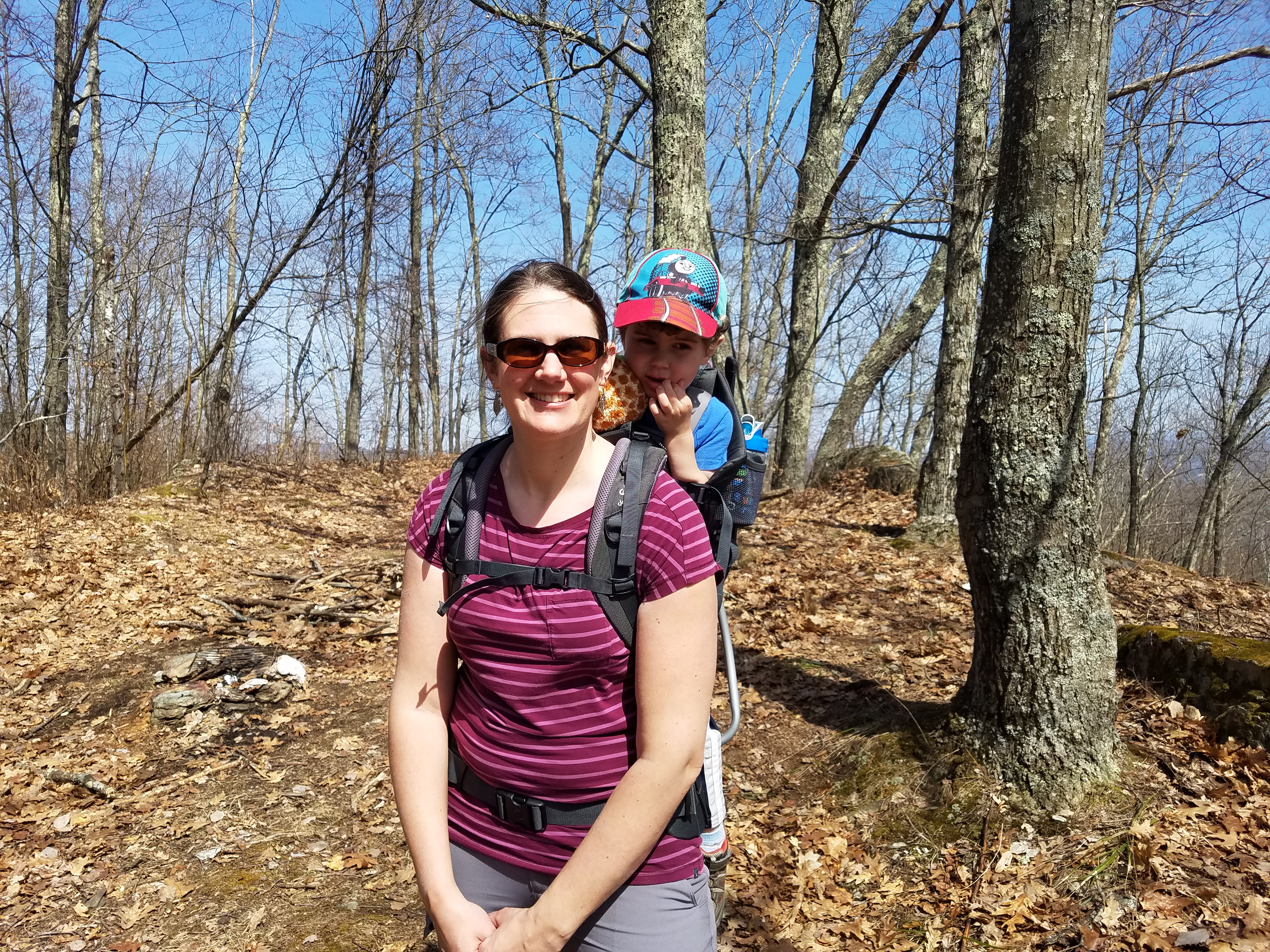 Andrew thought this would be a good hike for early spring since it is south-west facing and would likely be snow-free and dry. He was right, the woods were dry with white oaks and white pine, the forest floor blanketed with orange and brown leaves, and the occasional hepatica with a small pinch of purple.