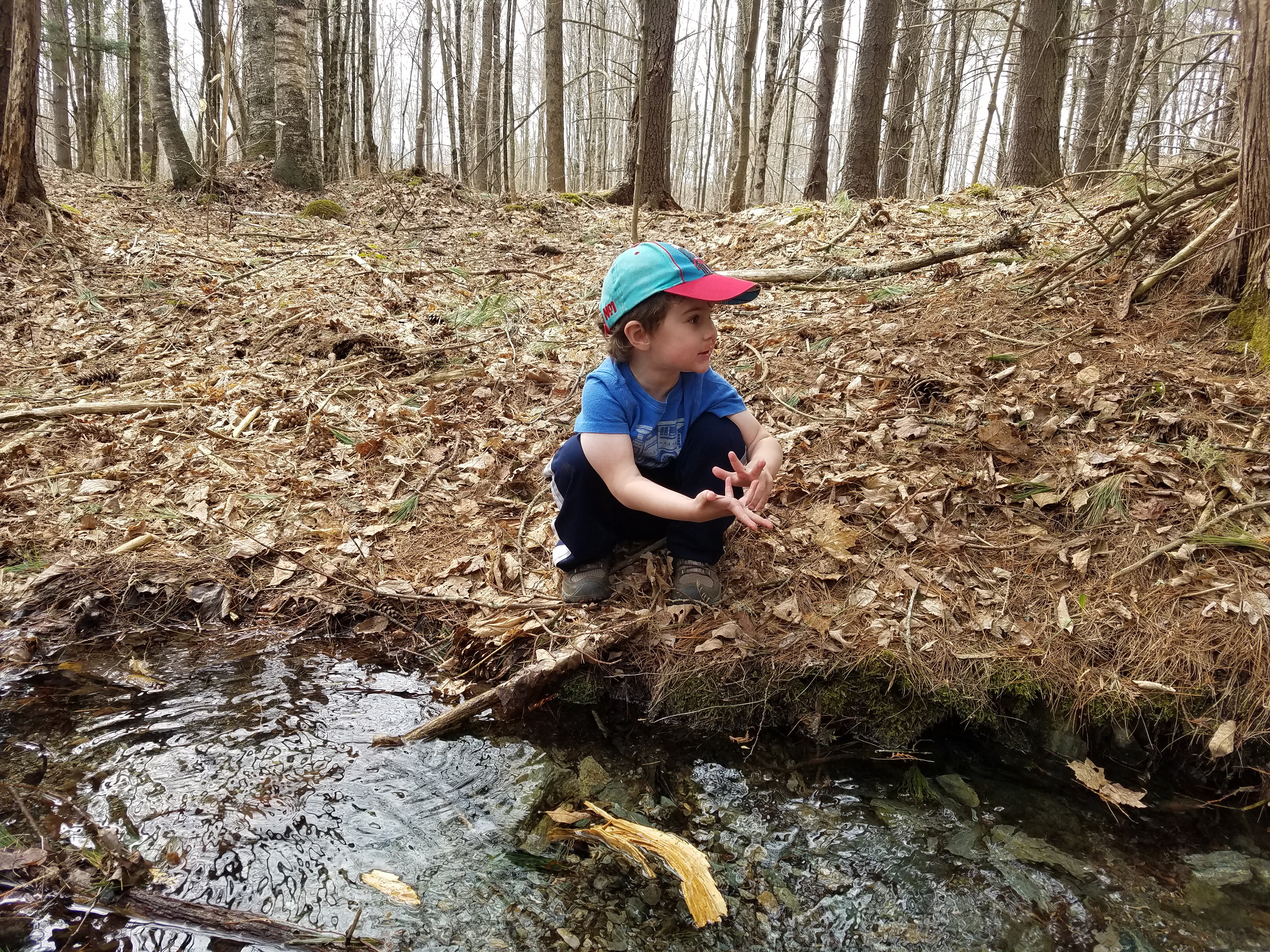 Instead of heading back down the trail right away we played in the stream again. Flipping rocks and searching for life in the water. Then we headed back down the trail. Happy early spring!