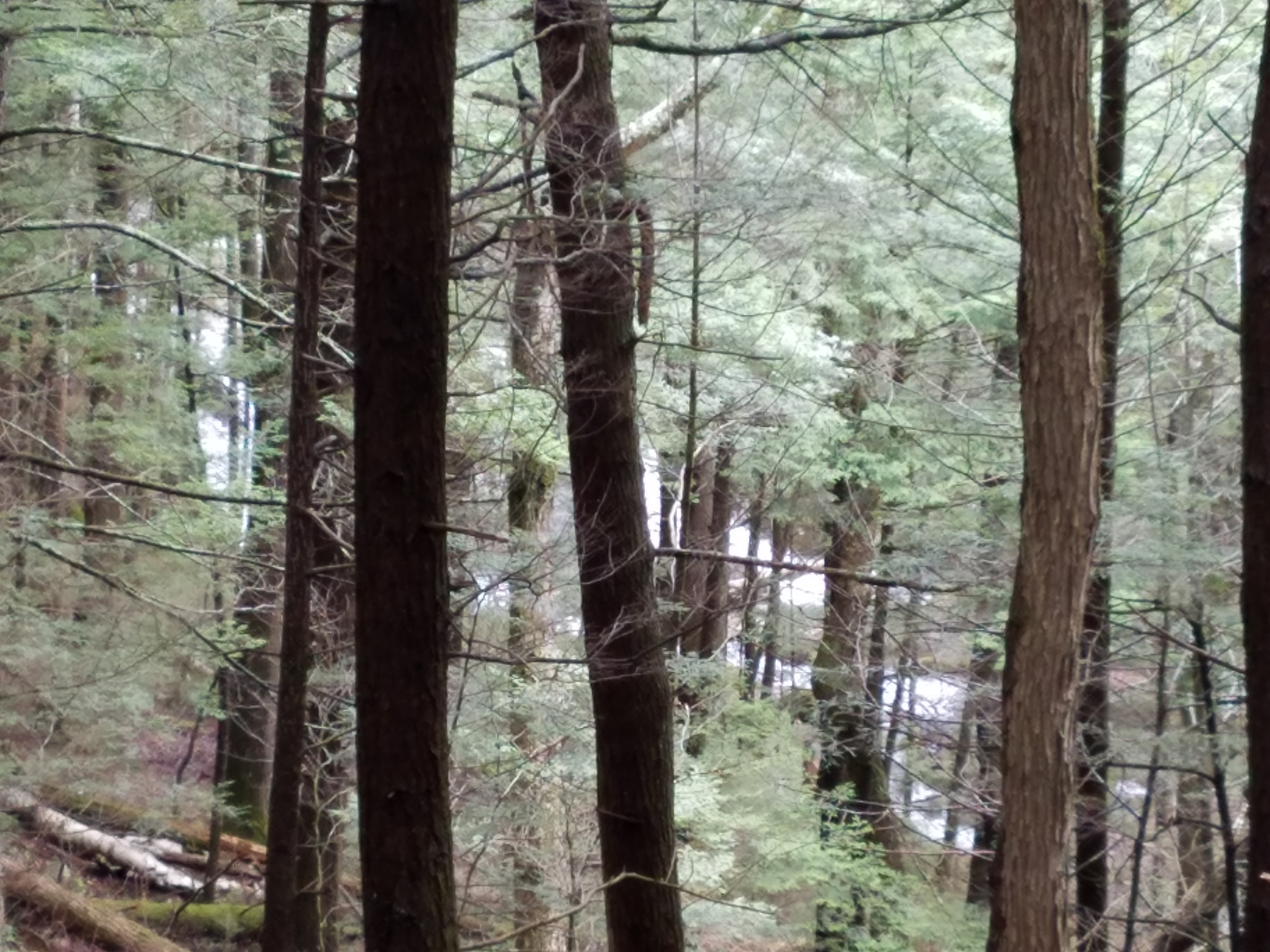 Eventually the trail leads away from the woods road and downhill slightly toward Peaked Hill Pond which is partly bordered by private land. Luckily the place looks like it doesn’t get too many visitors. We picked up some trash and carried it out, hoping that others will do so to make sure this place stays open to the public.