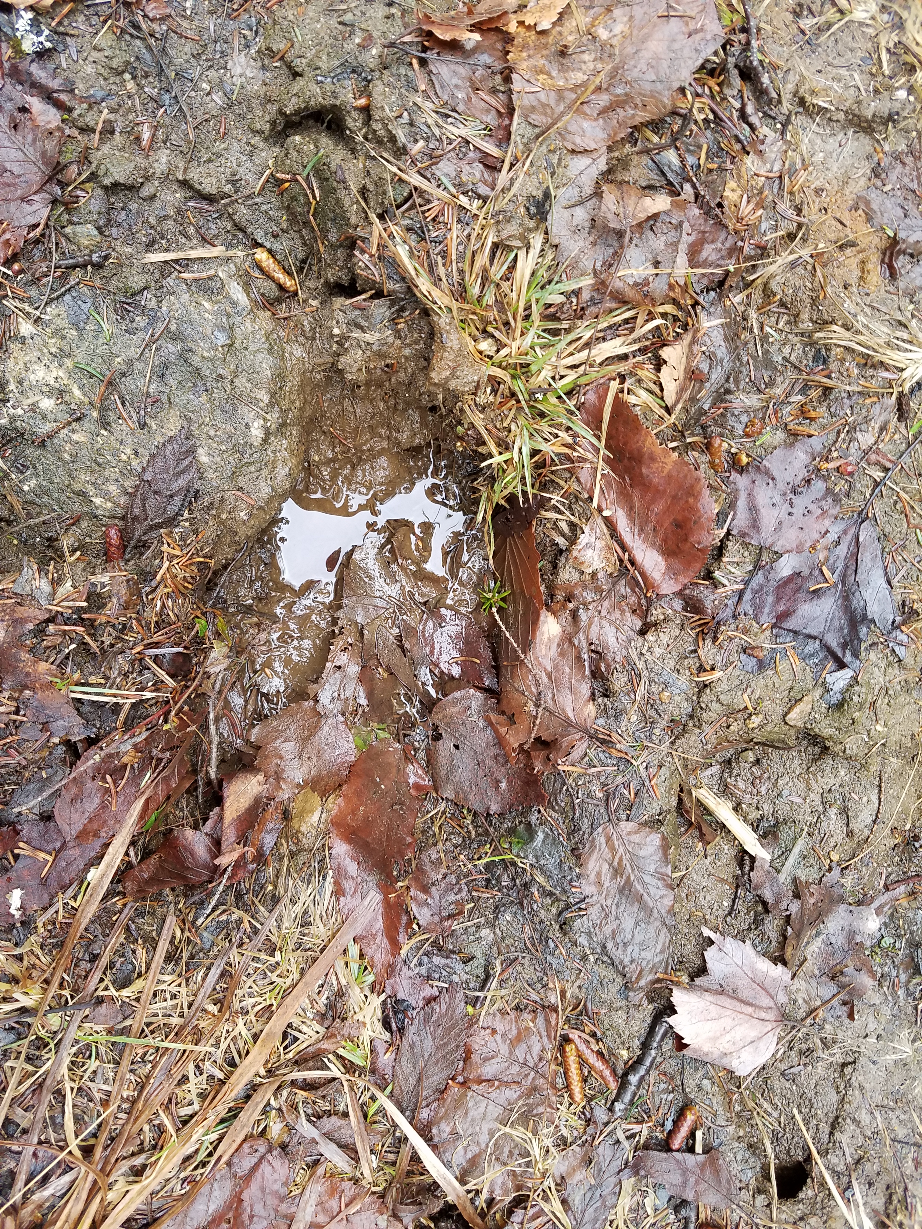As the woods road continued further into the forest, there were some sink holes to deal with from the freeze-thaw cycle, but nothing too hard to navigate around. The wildlife also use this road, as evidenced by the moose tracks and coyote scat.