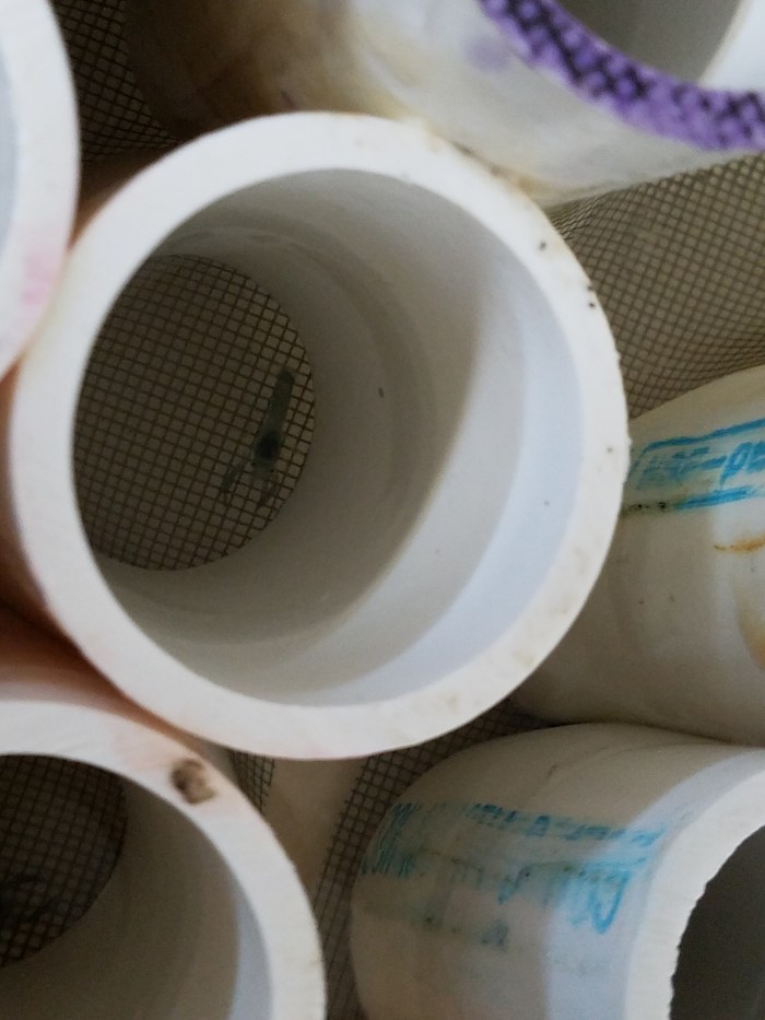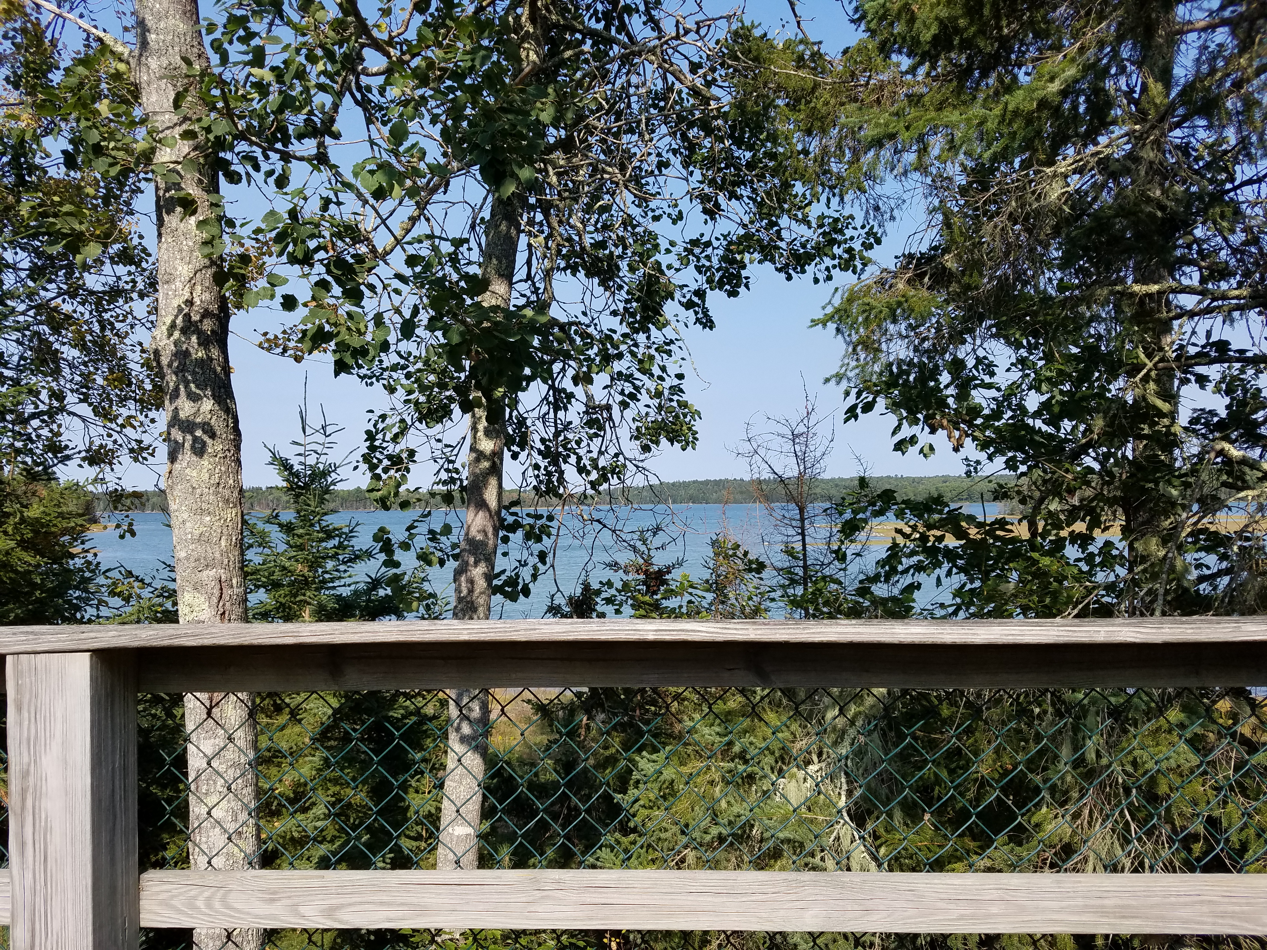 Lastly, we went on the short trail that brings you close to a tidal bay and wetland. The mosquitoes were in full force outside and complementary bug spray can be found in the viewing platform deck. We spied a great blue heron in the bay and little fishes in the shallow water.