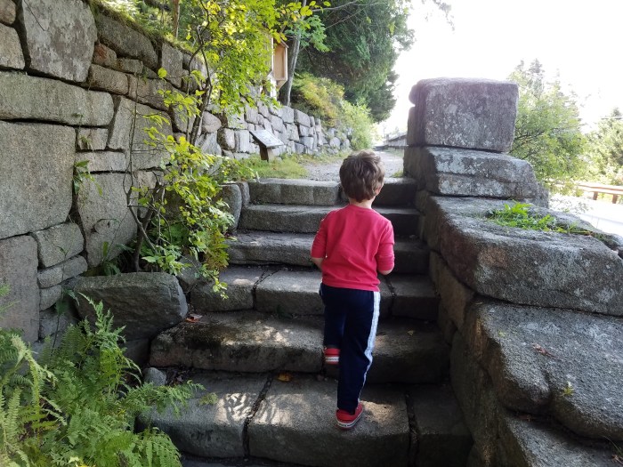While on vacation in Downeast Maine last month, we brought Alden to our favorite low-key hiking destination: Asticou Terrace Trail. This trail is in the Northeast Harbor on Mount Desert Island. A small parking lot can be found on Route 3/Peabody Road. Cross the road to the start of the Asticou Trail.