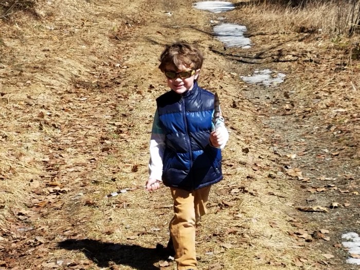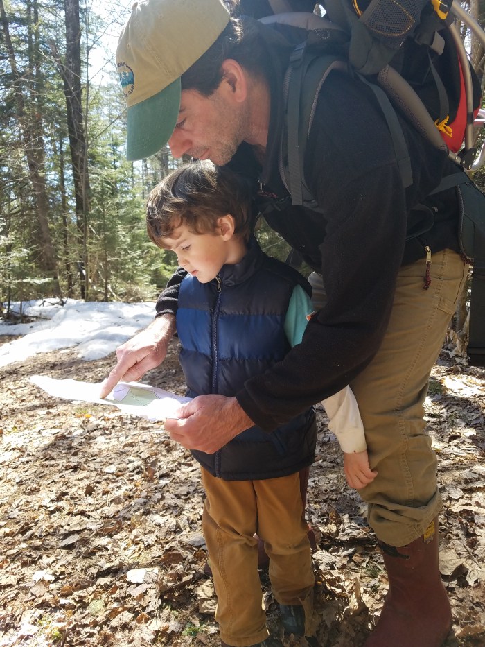 After another look in the gold mine and a quick search of actual gold (of course we came up empty handed) we started to make our way back. We watched a chipmunk in the ravine and let Alden navigate us back to the car using his own copy of the trail map.