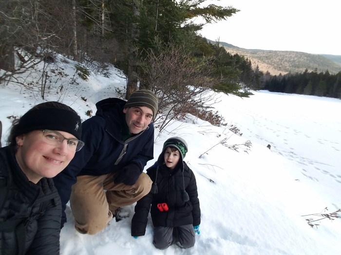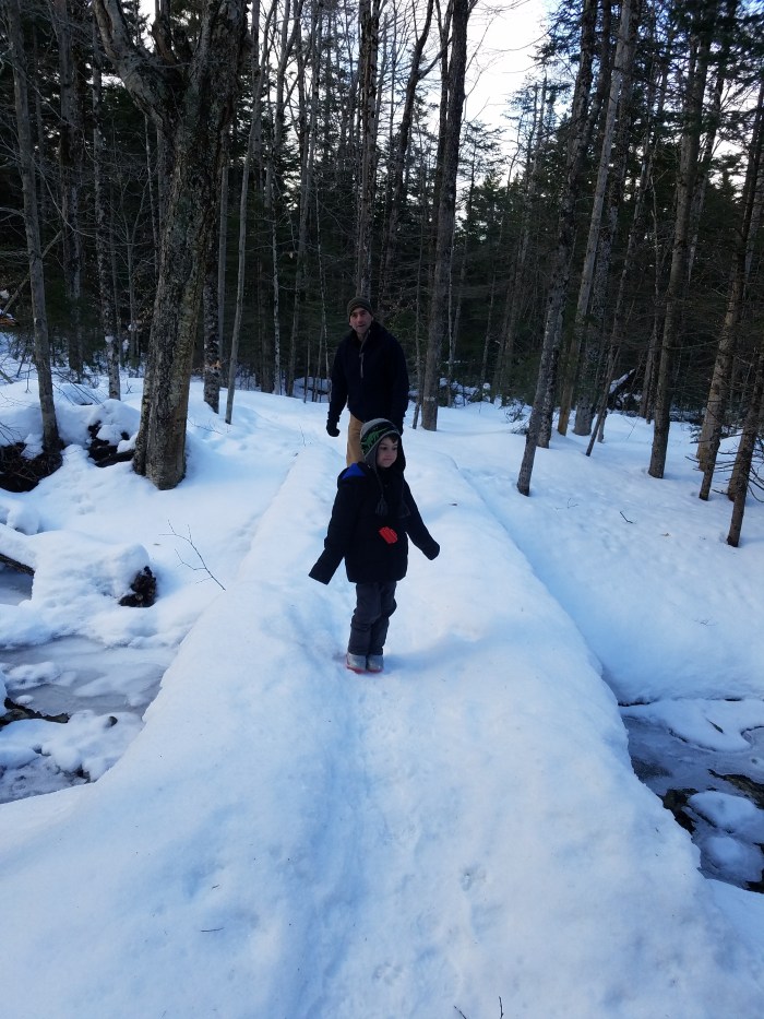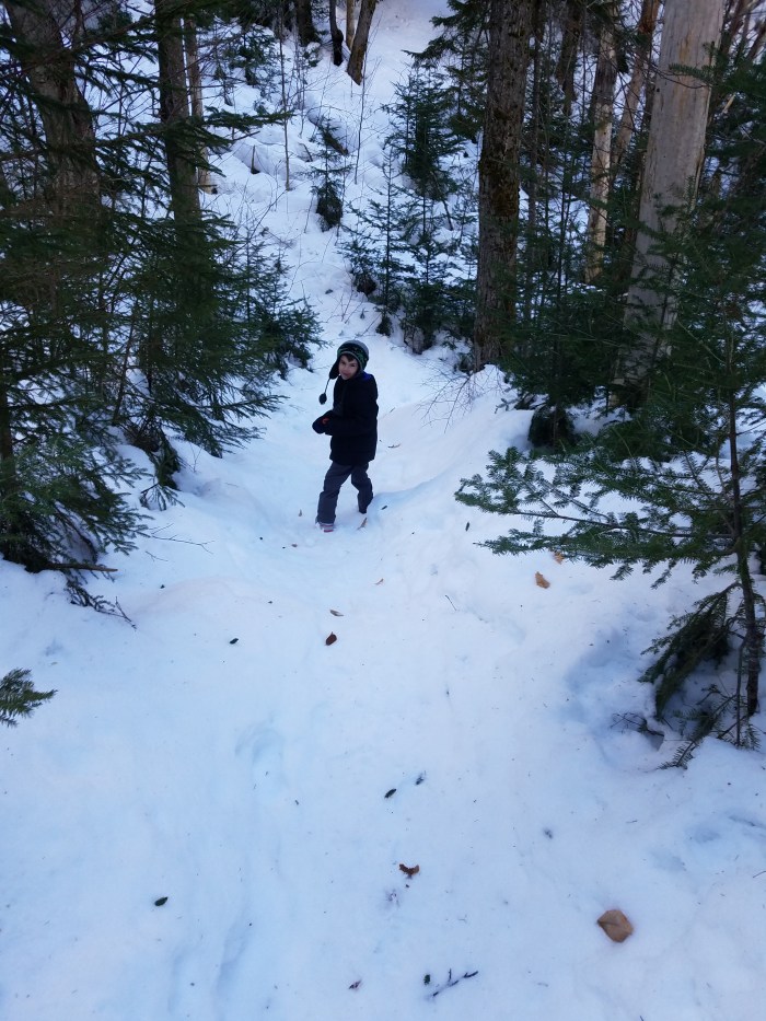 We were assigned an area around AMC’s Highland Center on Route 302 in Crawford Notch, NH. It was the perfect route to do with a 5 year old because the Highland Center offered a place to warm up, grab a hot drink, and use the bathroom.