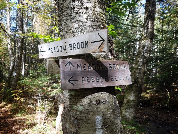 We took the Pebble Beach Trail down to Meadow Brook. We weren’t sure if pebble beach was at the end of its’ namesake trail along Meadow Brook because the rocks on the edge of the brook were a little larger than what we consider pebbles, but it provides a lovely junction. We turned north and walked along the Meadow Brook Trail.