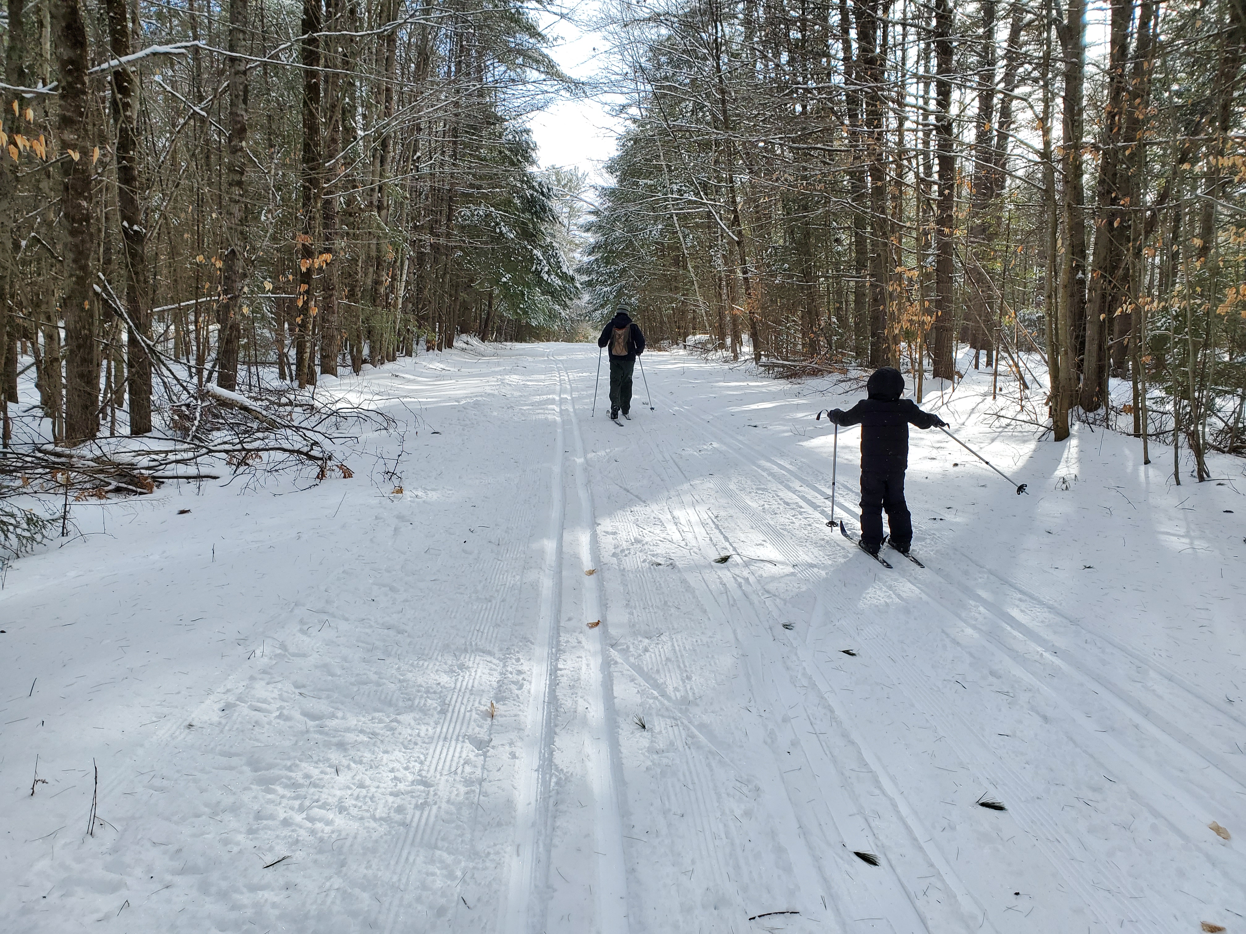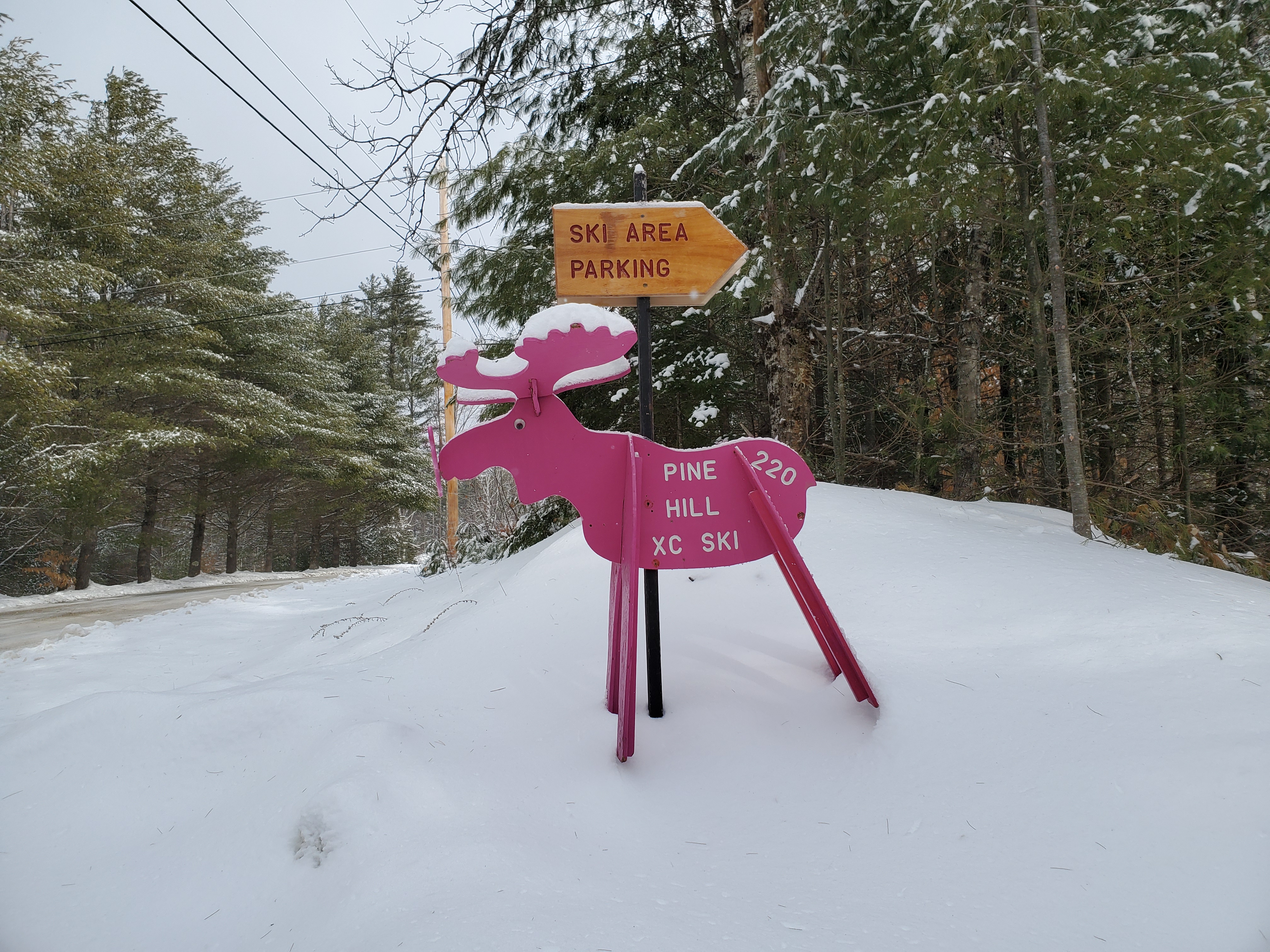 This past weekend we met friends in New London, NH who happen to live within walking distance of Pine Hill Ski Club trails. It was a day after a snowstorm and we hoped that the club had gone out grooming.