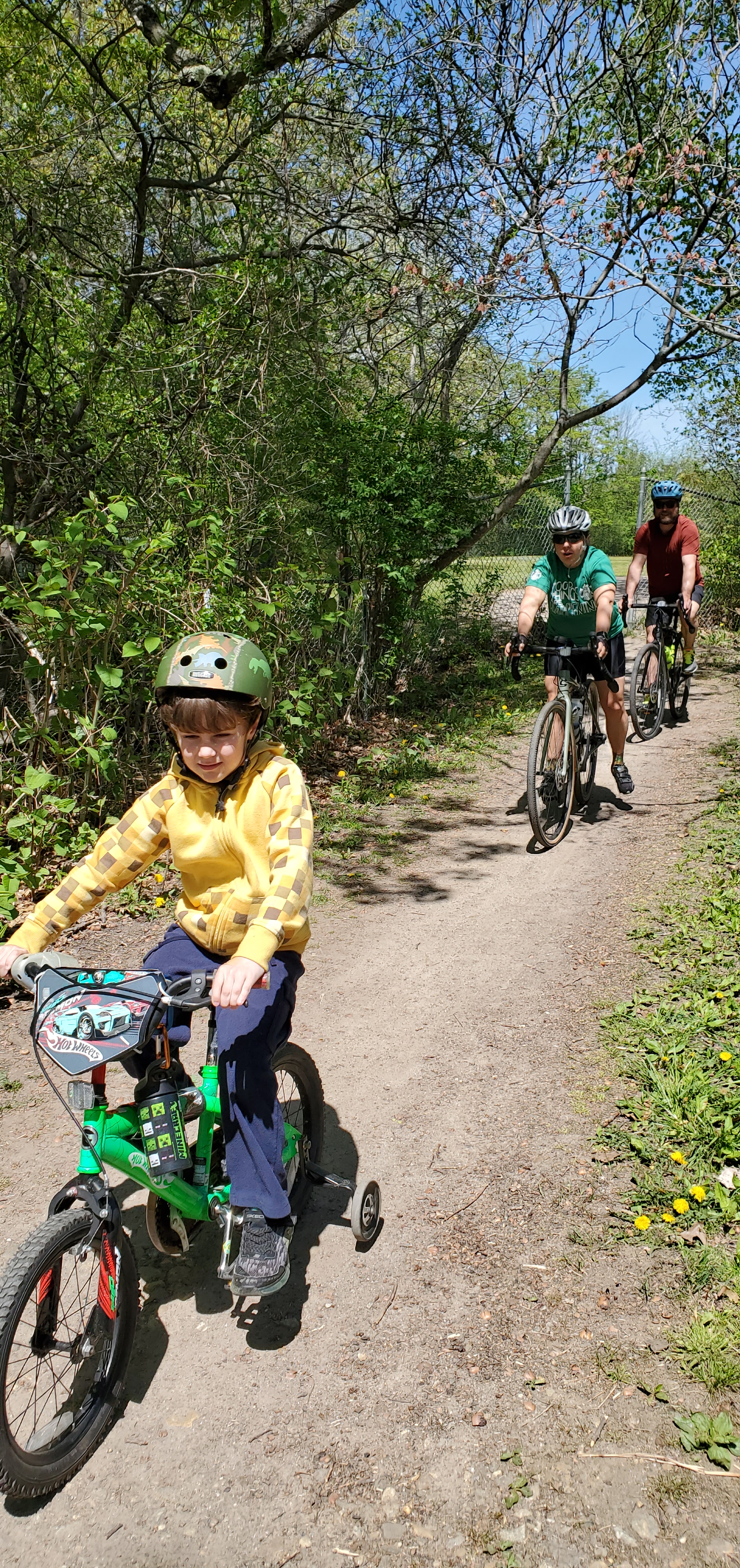 This was a wonderful rail trail. The full length is 5 miles end to end, and can easily be done by adults – or partially done with kids (depending on their skill level). The trail is mostly hard packed dirt with easy riding for little kids. Unfortunately, sign posts that once held interpretive signs are empty and the website maps were confusing (unless you know the area well). However, the beauty of the place next to the River with wetlands, fields, and forests is a gem of a place. Birds, reptiles, and fish were among our wildlife sightings for the day.
