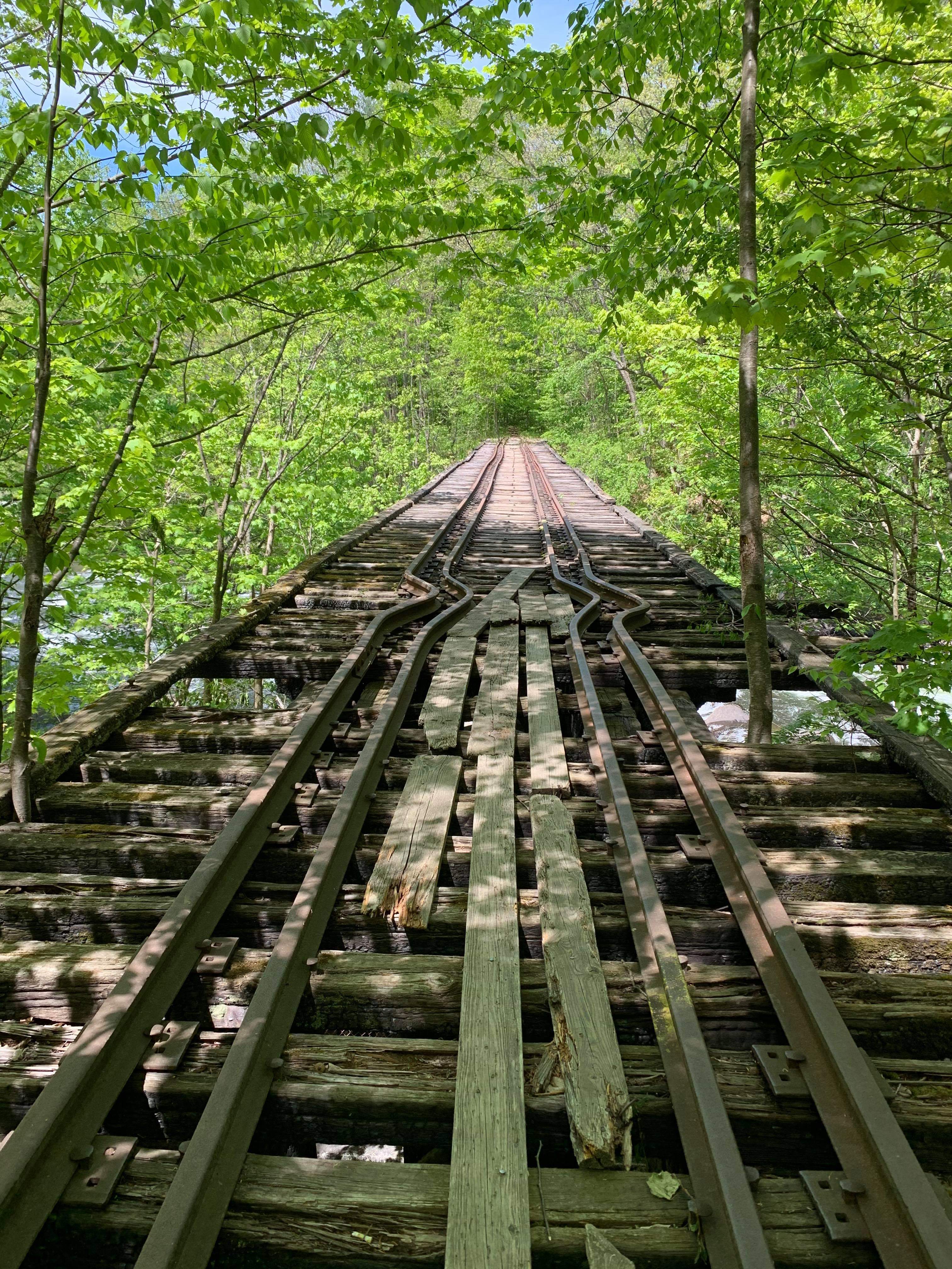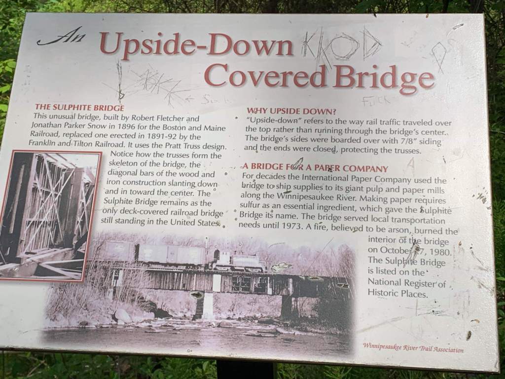 We stopped to eat lunch just off the rail trail, close to the river, while Sarah and Frederic continued to the end of the trail where they found the upside down covered bridge. The trains would travel on top, while other traffic would travel inside the covered bridge. If we had known this was there, we might have changed where we parked so we could have seen this neat historical landmark too.
