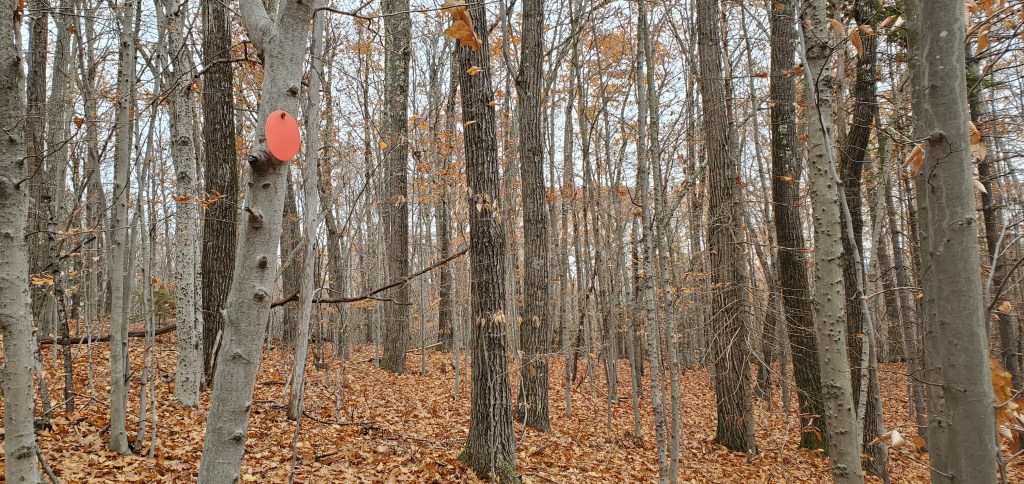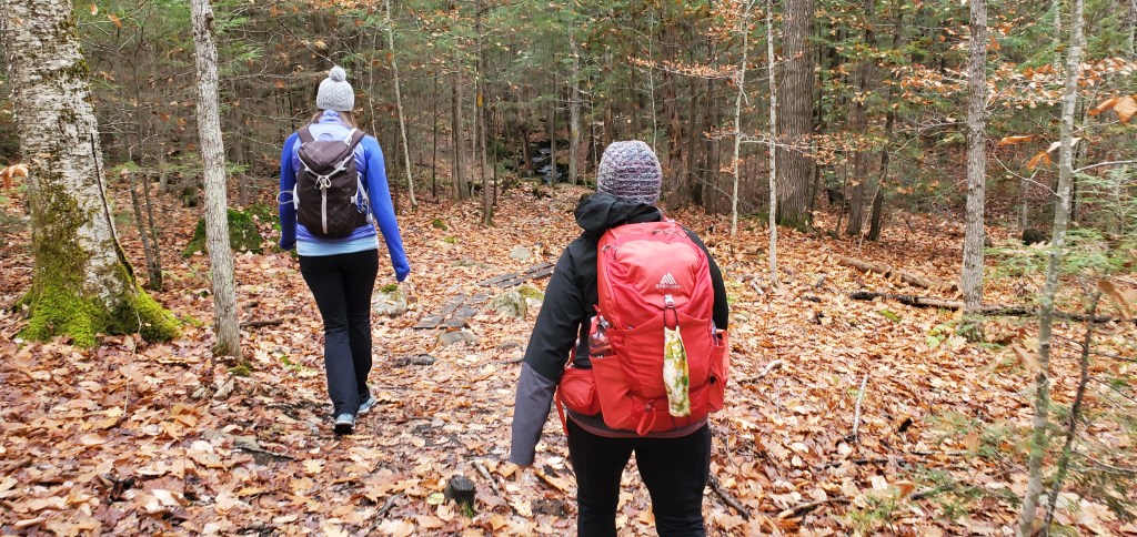 After we explored the falls, we followed the Rainbow Falls Trail (red trail) up and over a small hill. The recently fallen leaves made for slippery trail conditions as we scrambled to the top. There are also several ski trails that look like they would be a fun adventure this winter. It appeared that not many people hiked on this section and the trail markers disappeared for a short while in the direction we were going, but we managed to find our way.