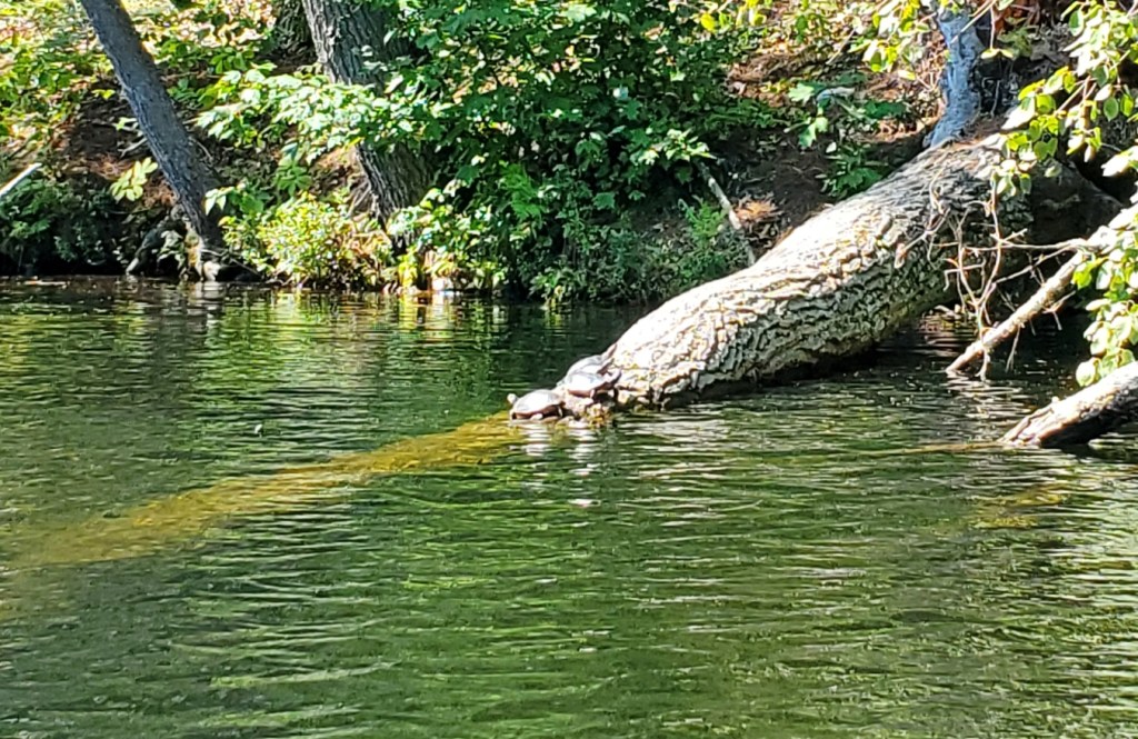 We packed up our gear, slid into the water, and immediately saw a log full of painted turtles. They quickly slid into the water and we hoped we would find more. The water was shallow here and small fish were abundant.